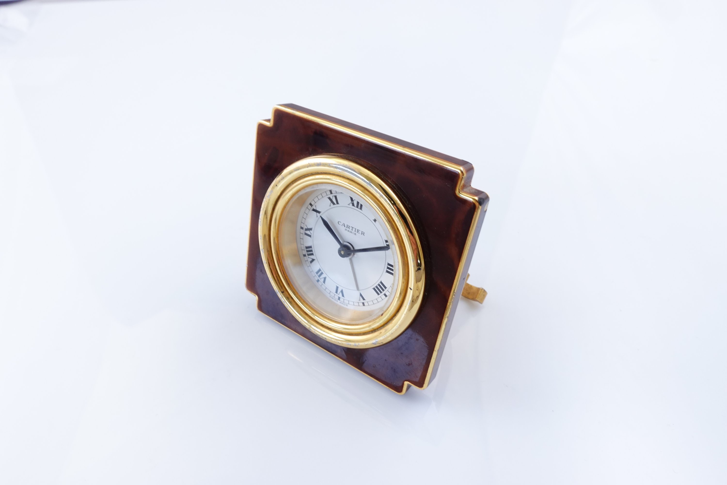 en métal doré et émail brun à la façon de l'écaille, de forme carrée, aux angles rentrés.