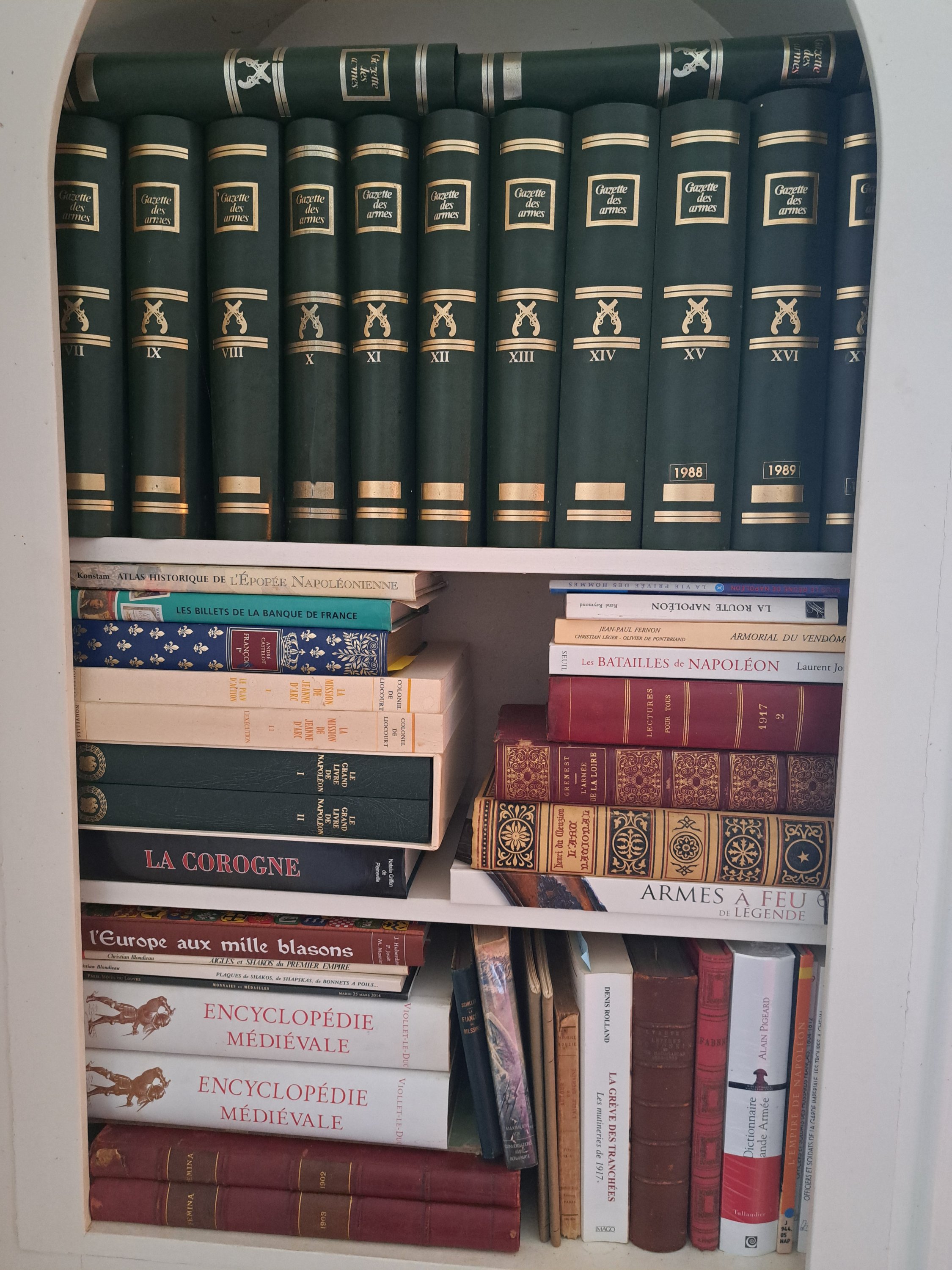 - Quatre bibliothèques de livres divers dont historique (Empire), armes, art, etc.