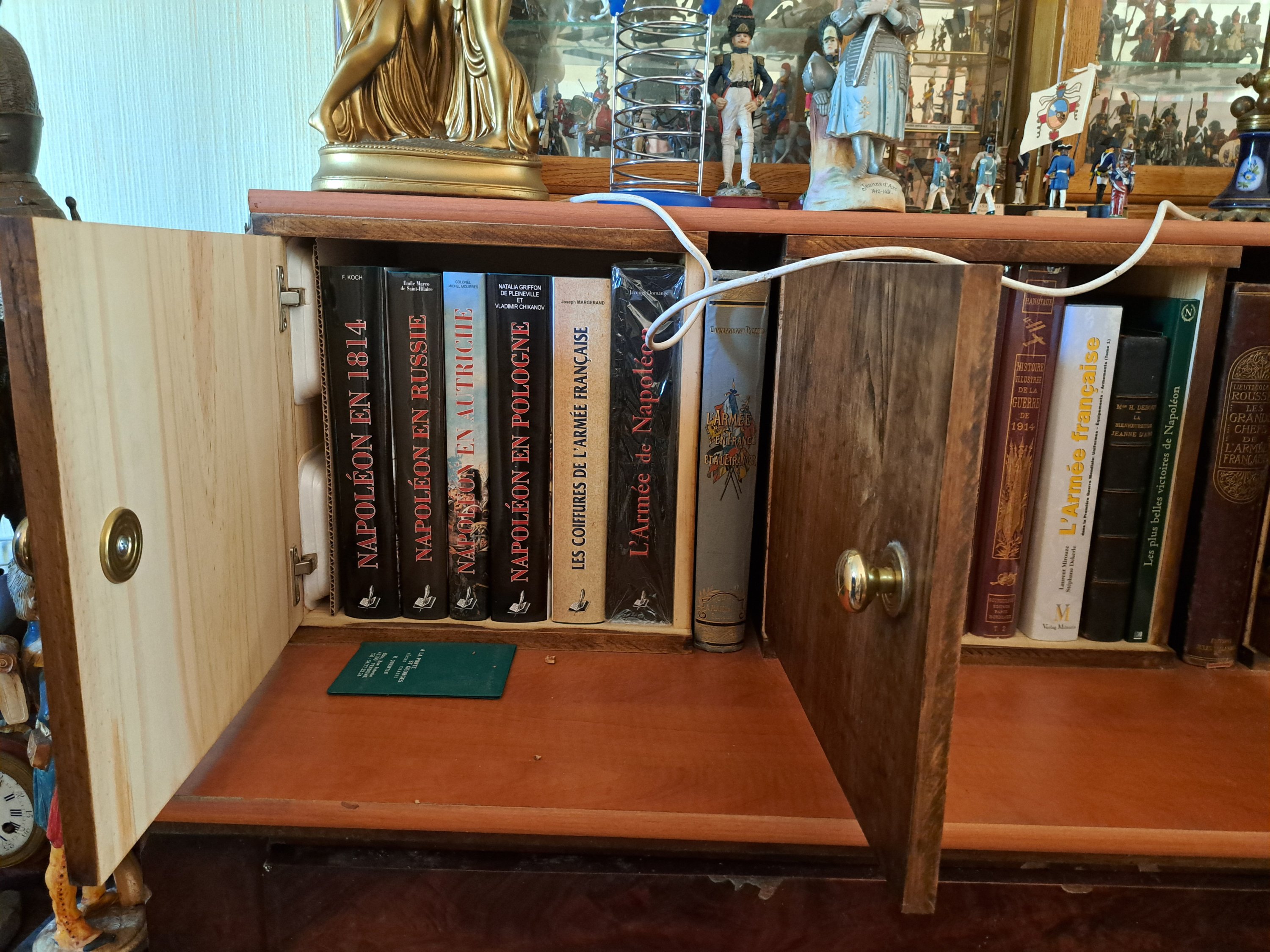 - Quatre bibliothèques de livres divers dont historique (Empire), armes, art, etc.