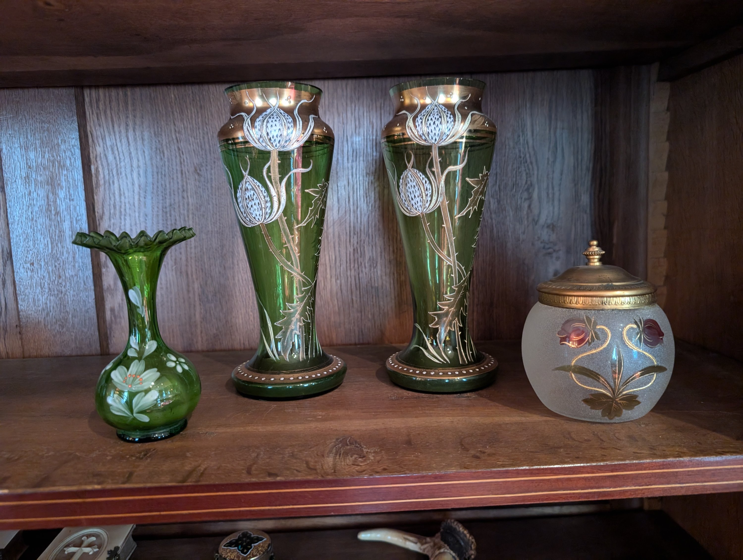 Deux vases balustres, un vase à col évasé et une bonbonnière