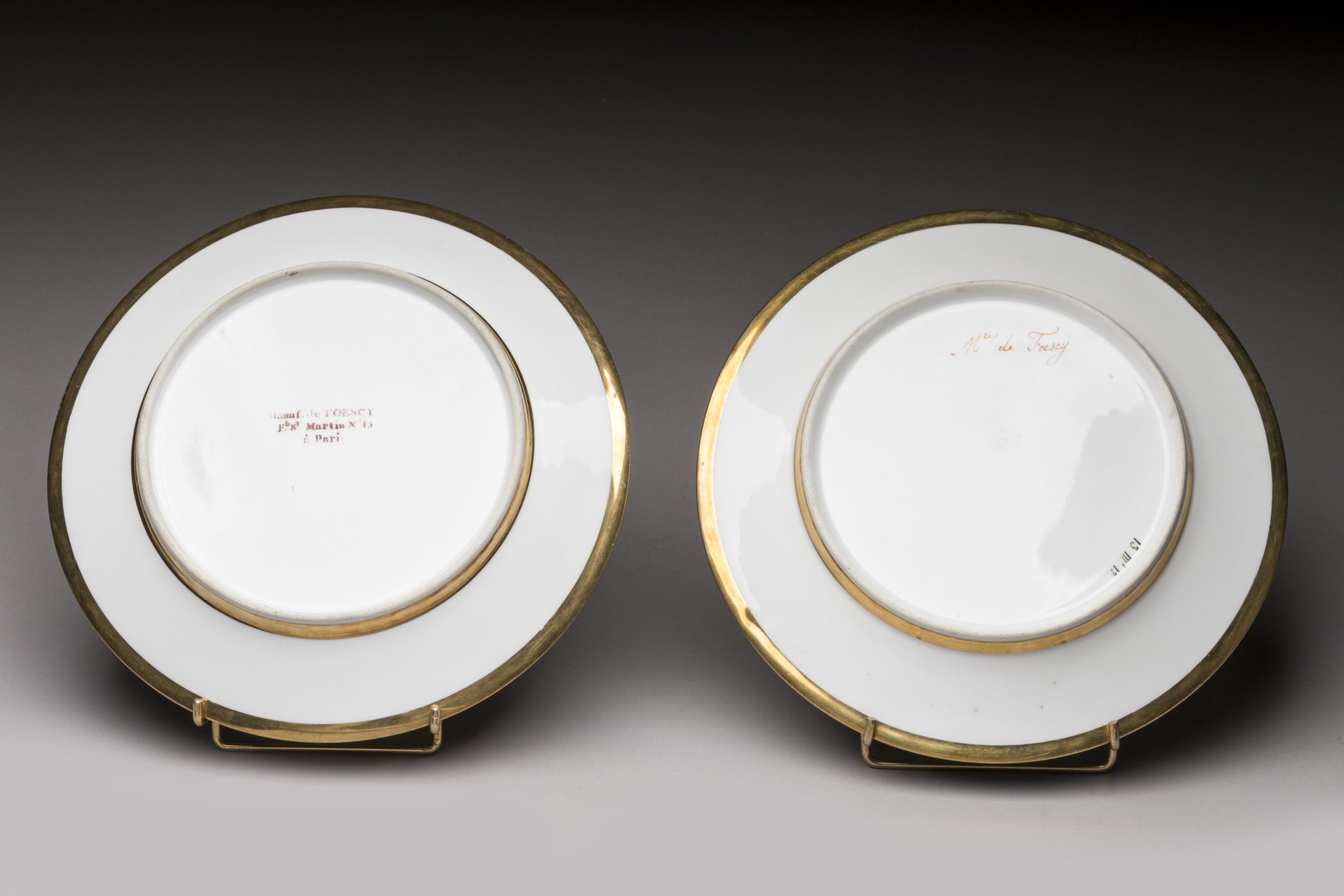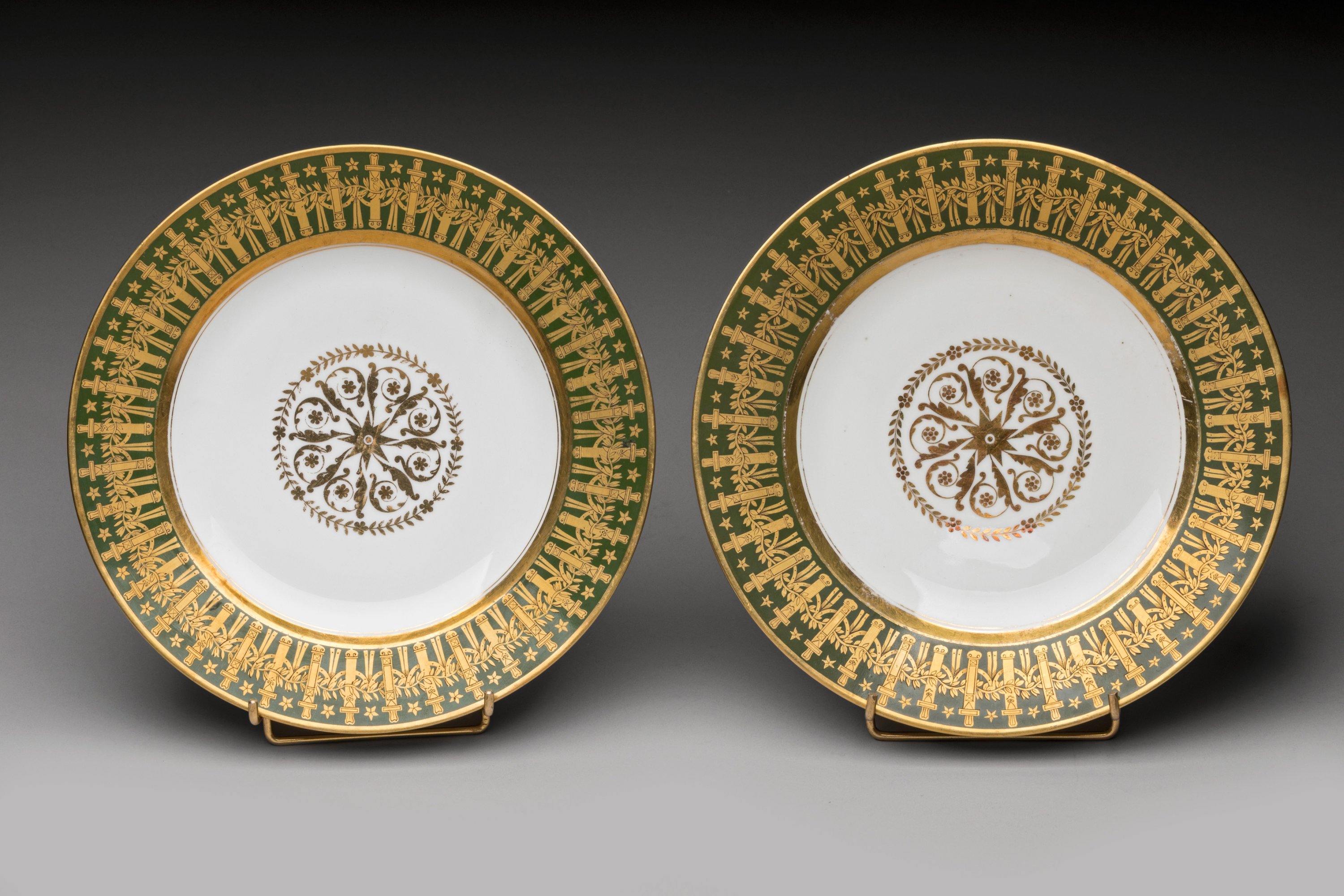 Sèvres and Manufacture de Foescy. A couple of porcelain plates complementing Emperor Napoleon I's personal service. Empire Period.
