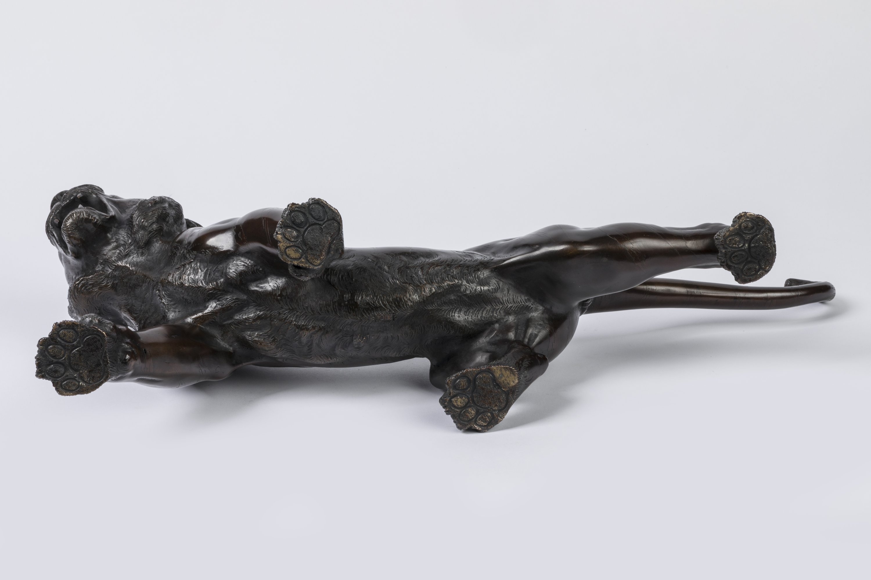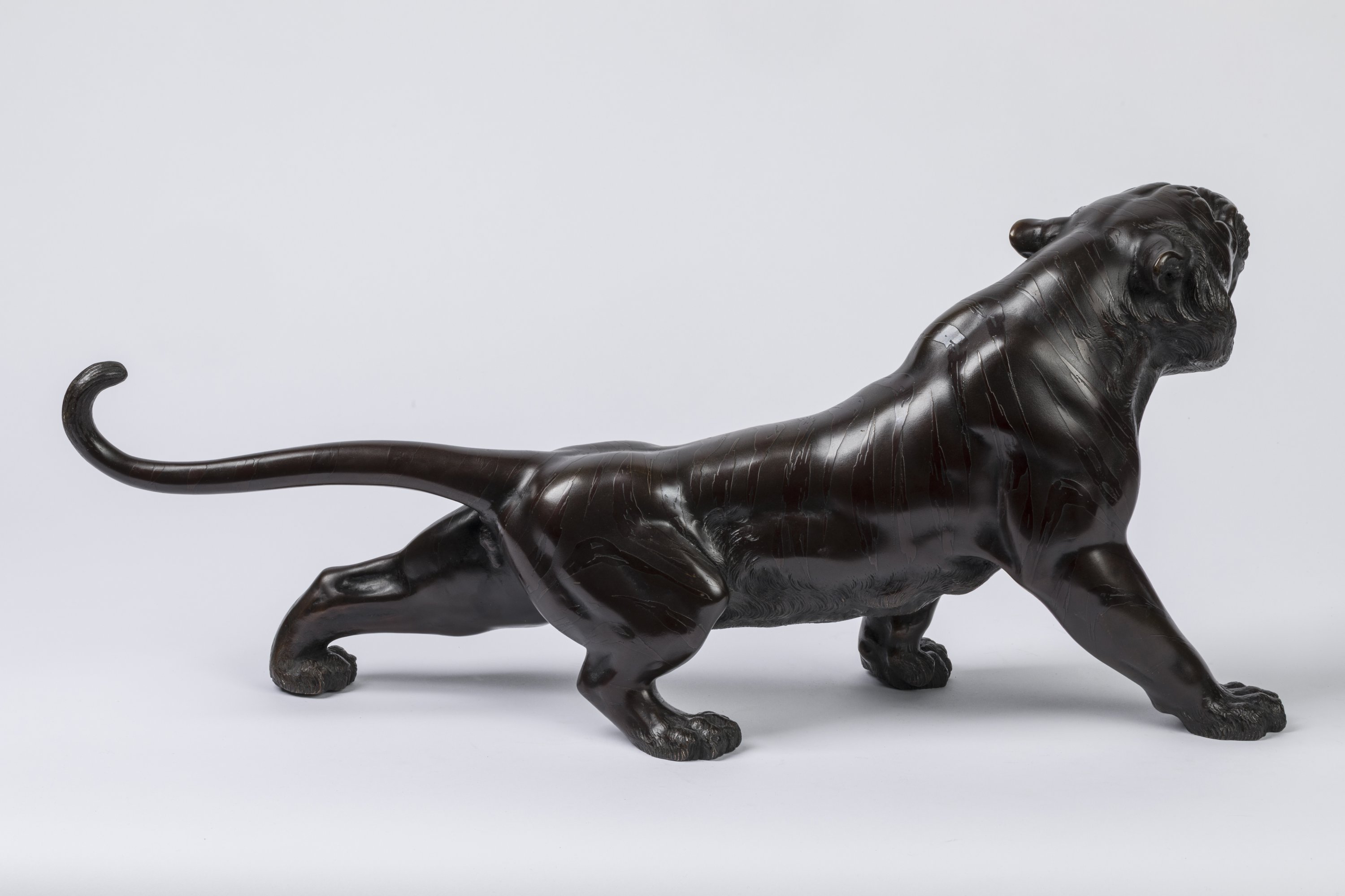A Japanese bronze okimono featuring a roaring tiger. Meiji Period.