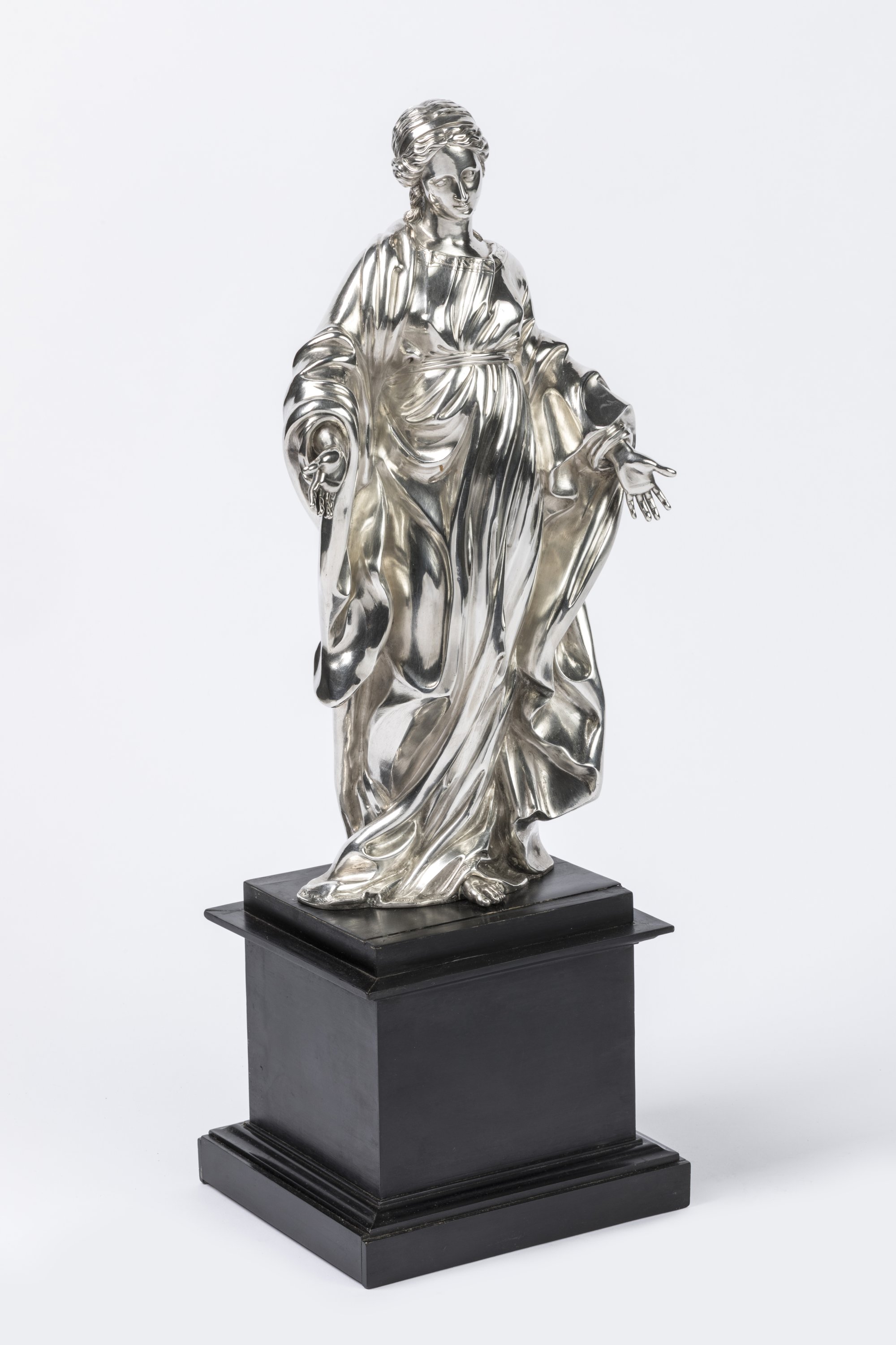 François-Joseph Bertrand-Paraud. A silver sculpture of the Virgin Mary. On a blackened pearwood base.