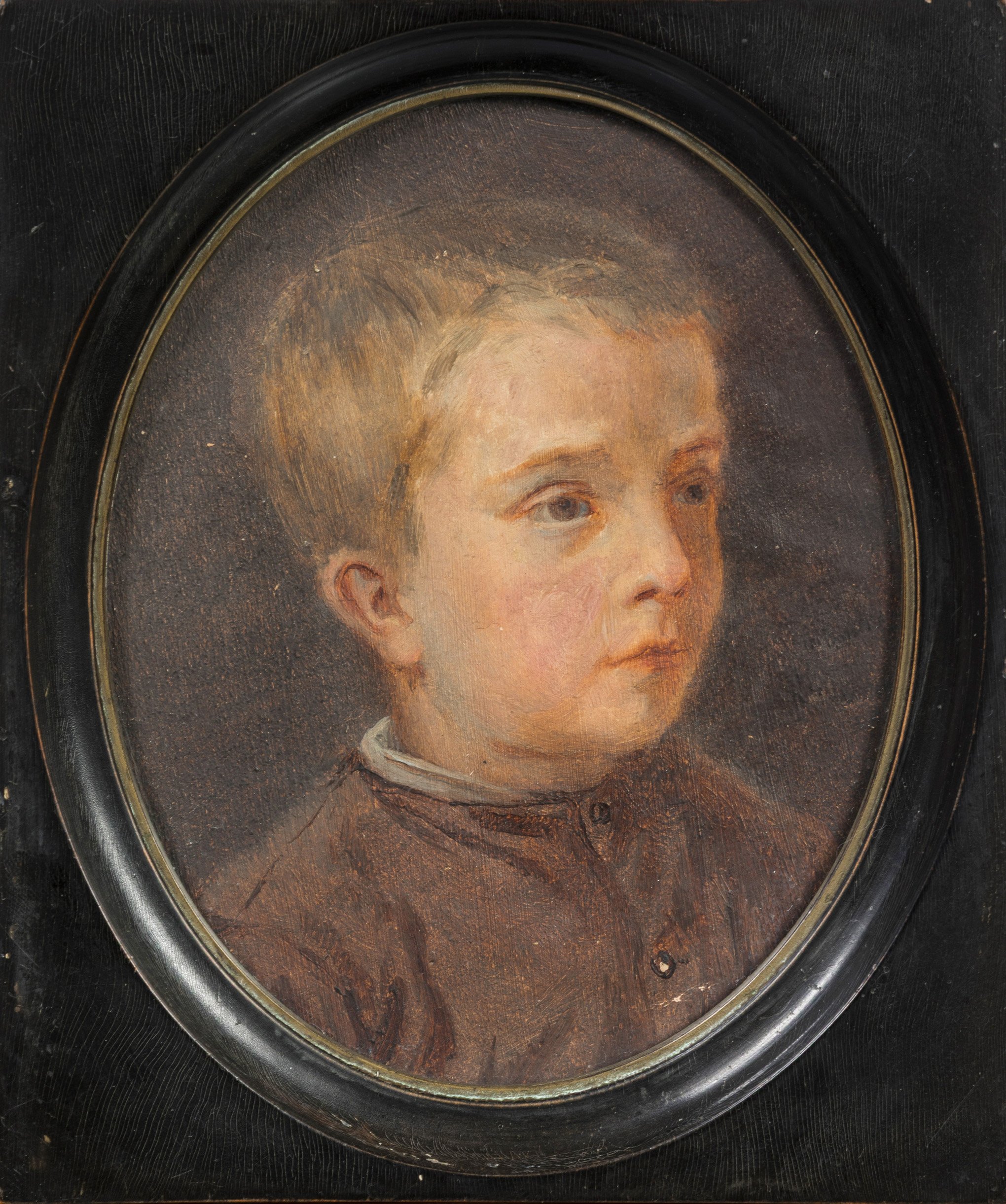 Attributed to Matthijs Maris. A panel portrait of a child.