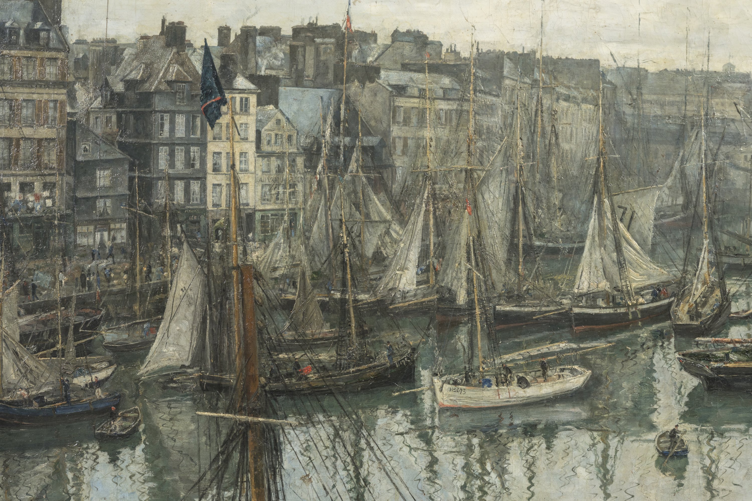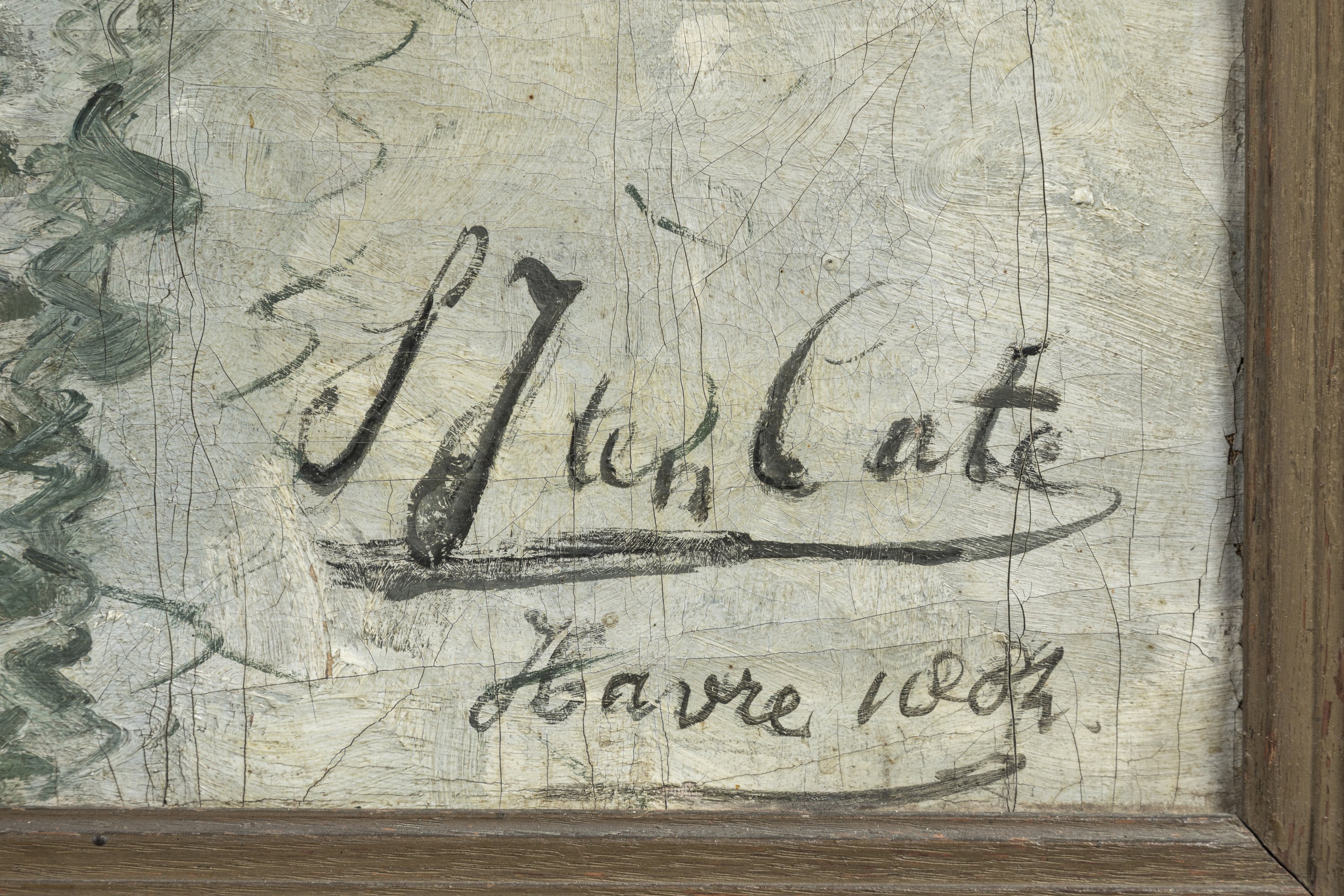 Ten Cate. An 1884 painting entitled "Le Havre avant la régate, le port et ses voiliers" (Le Havre before the regata, its harbour and sailboats). Oil on canvas. Signed and dated.