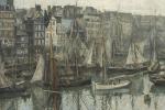 Peintre voyageur d'origine néerlandaise, Siebe Johannes Ten Cate voyagea en Europe en passant notamment par l'Angleterre, la Suède ou encore la Suisse, ainsi que par la ville du Havre, l'un des lieux qu'il a le plus représentés dans ses oeuvres. Cette grande toile s'inscrit dans le cadre des célèbres courses de voile organisées depuis 1838 par la Société des Régates du Havre, comme l'illustre une autre oeuvre de l'artiste, de dimensions semblables, réalisée la même année 1884, mais située de l'autre côté de la baie de la Seine, à Honfleur, et montrant le départ de la régate (vente Sotheby's New York 21 novembre 2017 n°47). Notre tableau représente une vue du port avec les navires des compétiteurs. Peintre de paysage, Ten Cate privilégie les vues animées avec des angles originaux. A ce titre, ce tableau adopte un angle en plongée particulièrement prononcée afin de donner un champ plus large à l'oeuvre, à la manière d'une photographie. Représentant du courant impressionniste hollandais, l'artiste est soutenu par Paul Durand-Ruel qui lui consacre une exposition personnelle de 70 oeuvres en mai 1891.