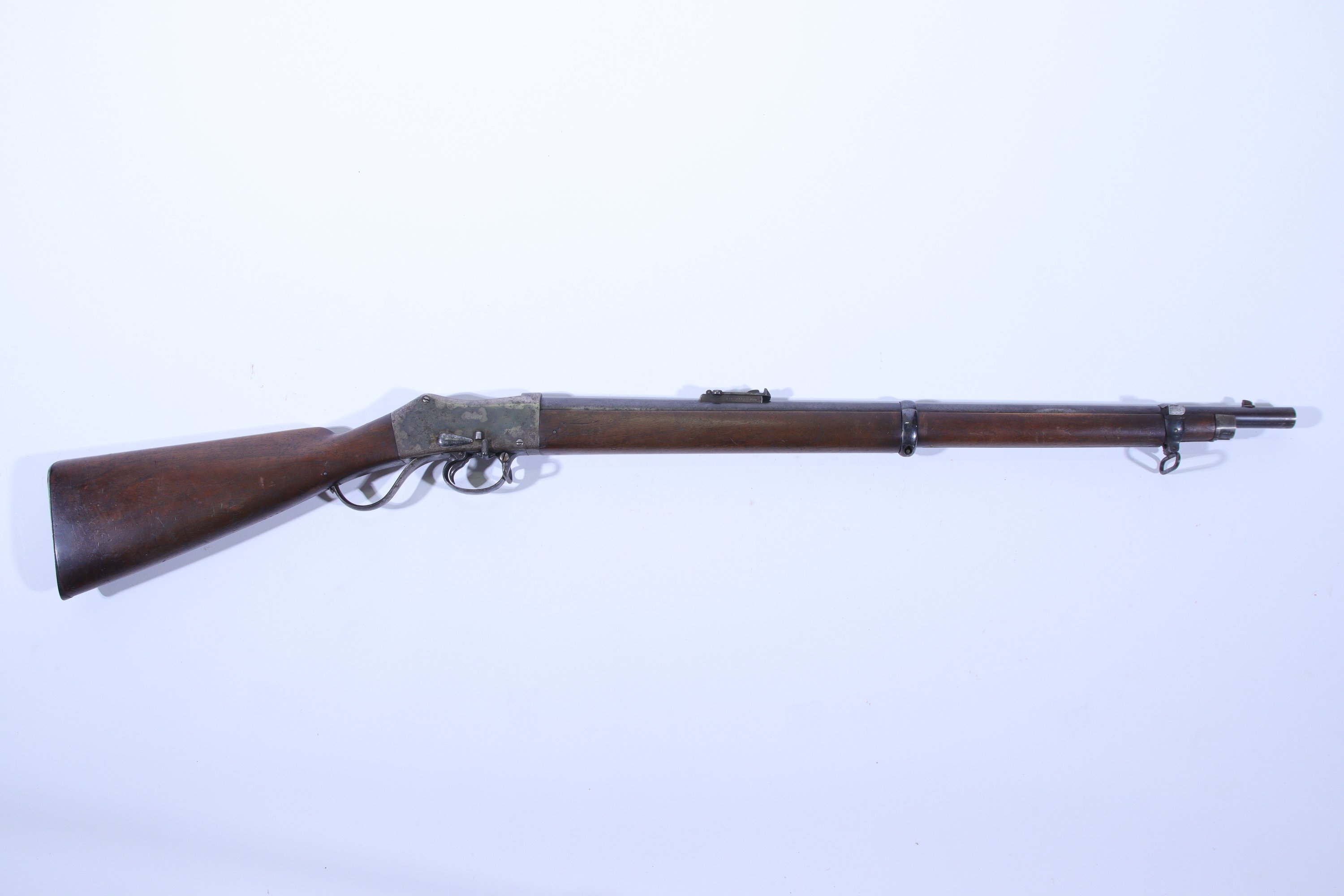 Canon rond avec hausse, marqué « T.MURCOTT 68 HAYMARKET LONDON 2369 ». Boîtier bleui marqué « MARTINI TANNER & Cie FRAUENFELD » et « MARTINI’S PATENT ».