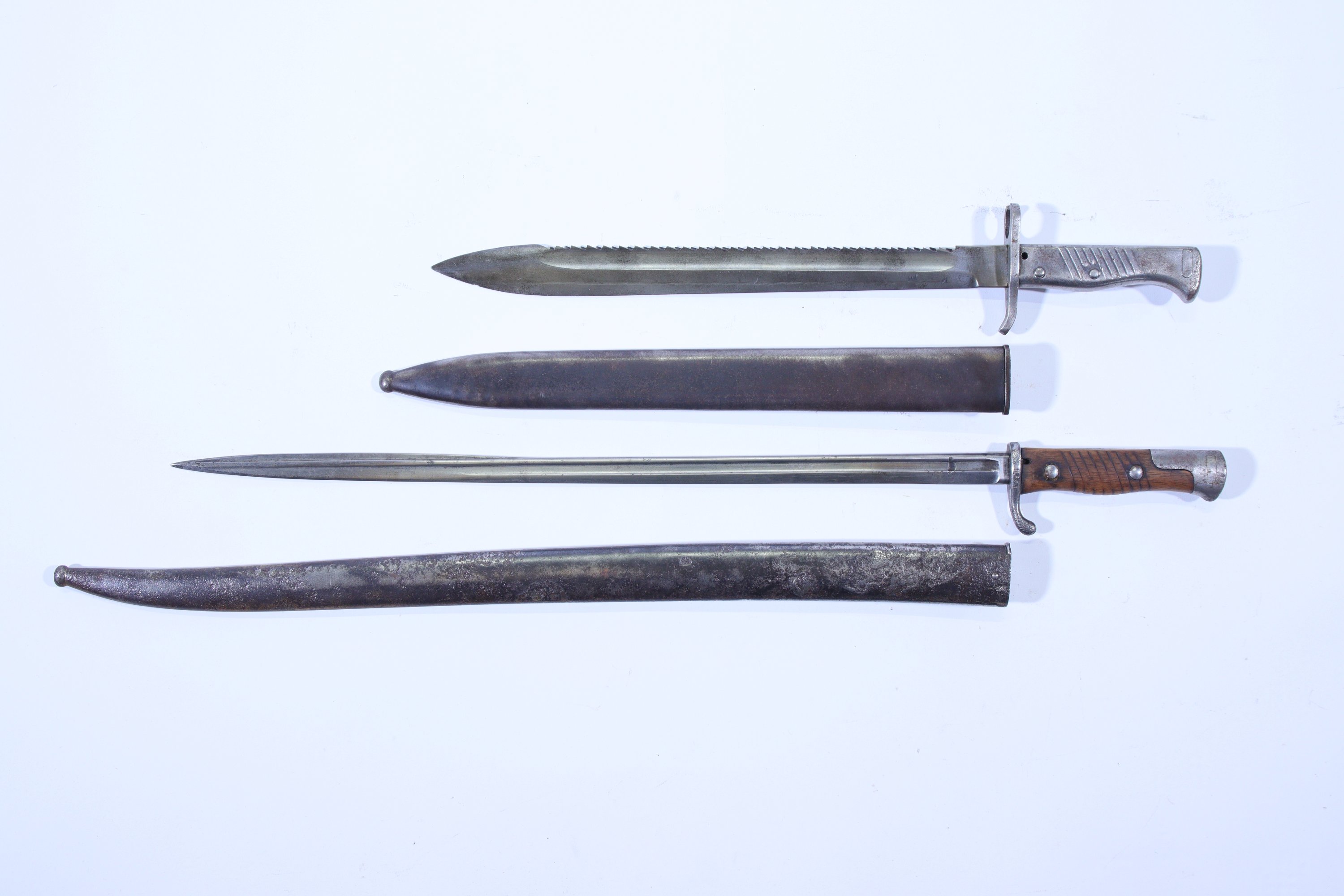 - Une baïonnette 1898, croisière avec reste de matricule 4.G. Lame de Erfurt avec un fourreau dépareillé