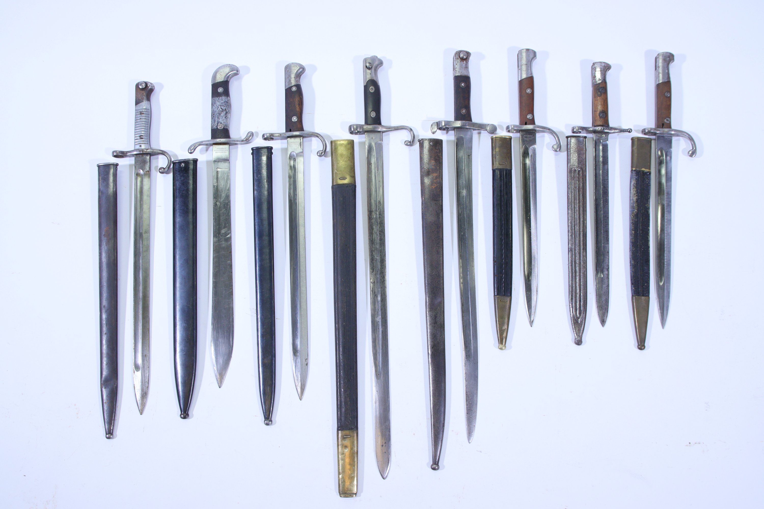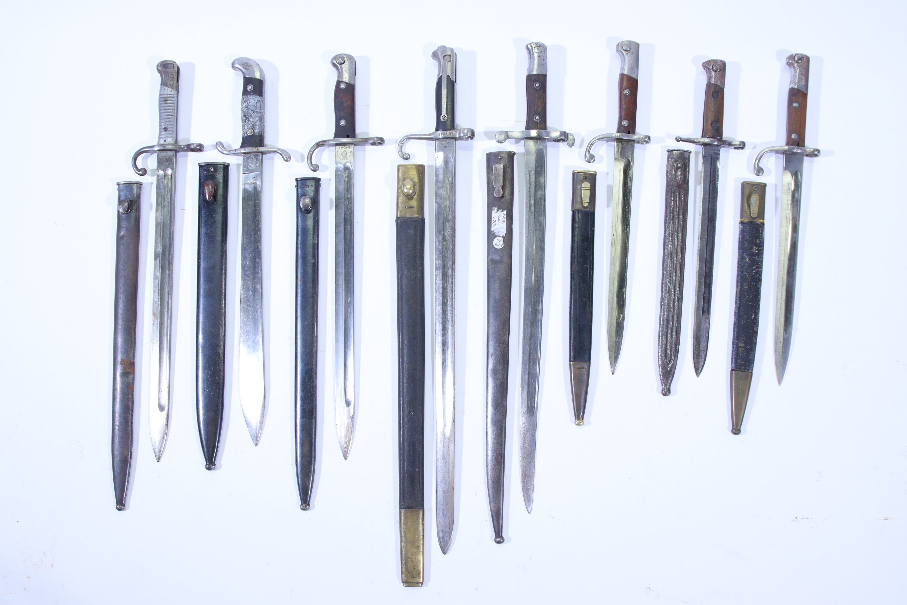 dont modèle argentin 1891 et 1909, modèle portugais 1885, baïonnette italienne 1871 et baïonnette brésilienne modèle 1908.