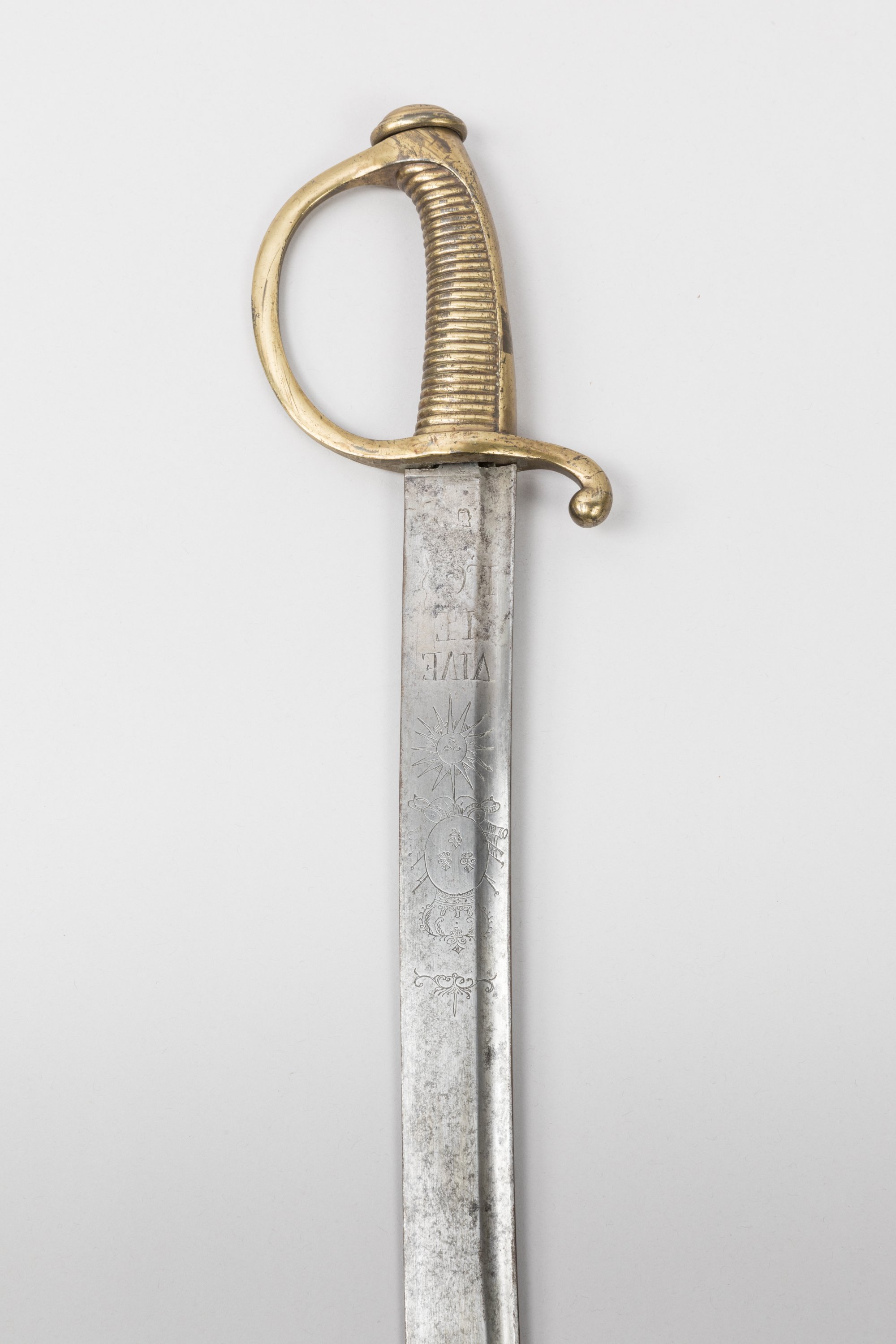 Monture en laiton. Belle lame signée "Cassagnard", marquée "Vive le Roy" avec armes de France et soleil.