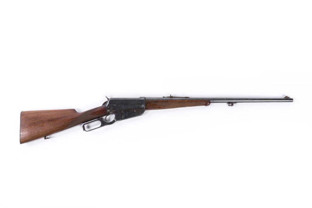 Calibre 405 W.C.F. Canon avec hausse de 61 cm, boitier de culasse avec reste de marquage, crosse en noyer en partie quadrillée, finition rebronzée