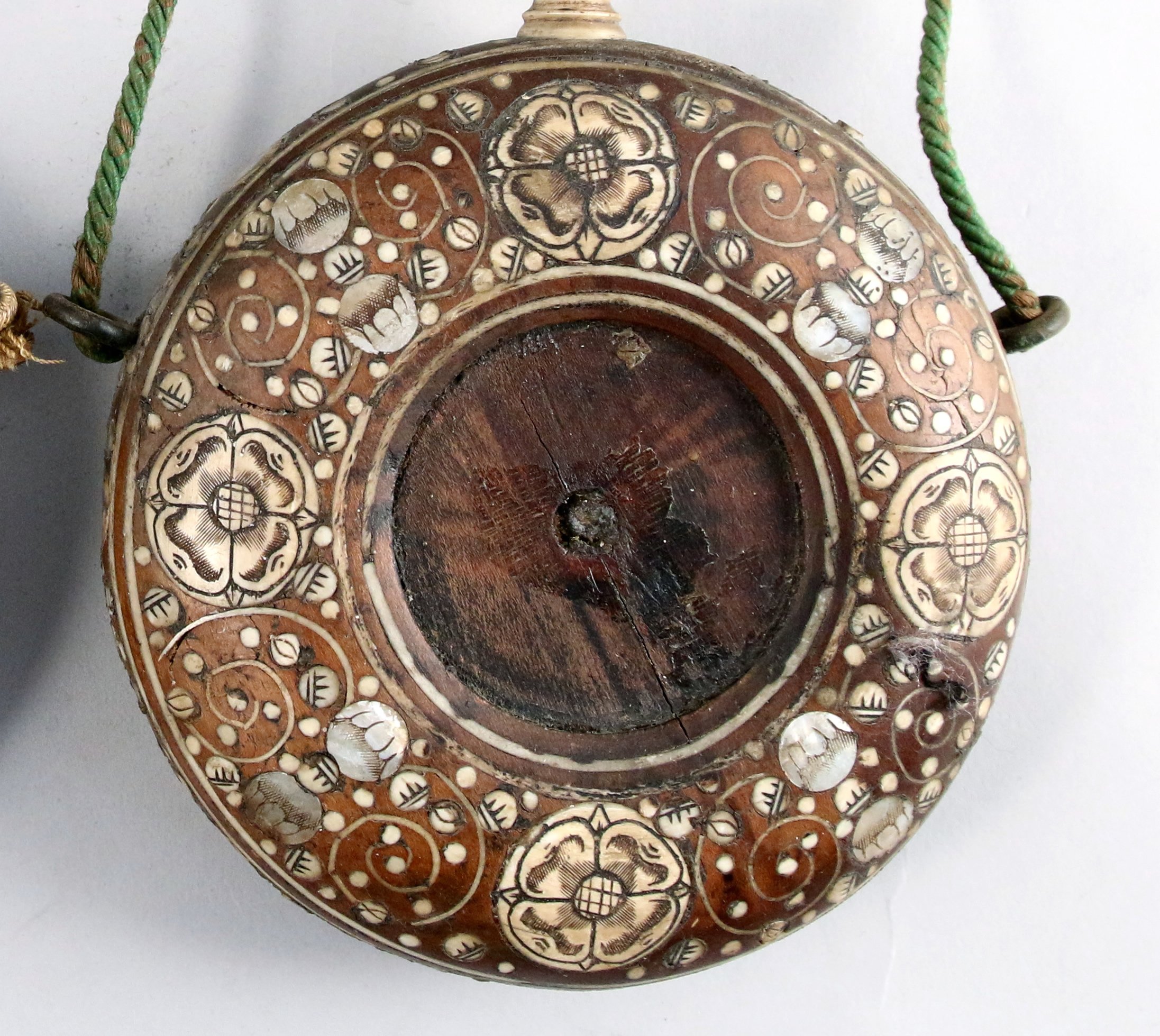 de forme circulaire, à décor d'incrustations d'os gravé et de nacre à motifs quadrifeuilles et rinceaux.
