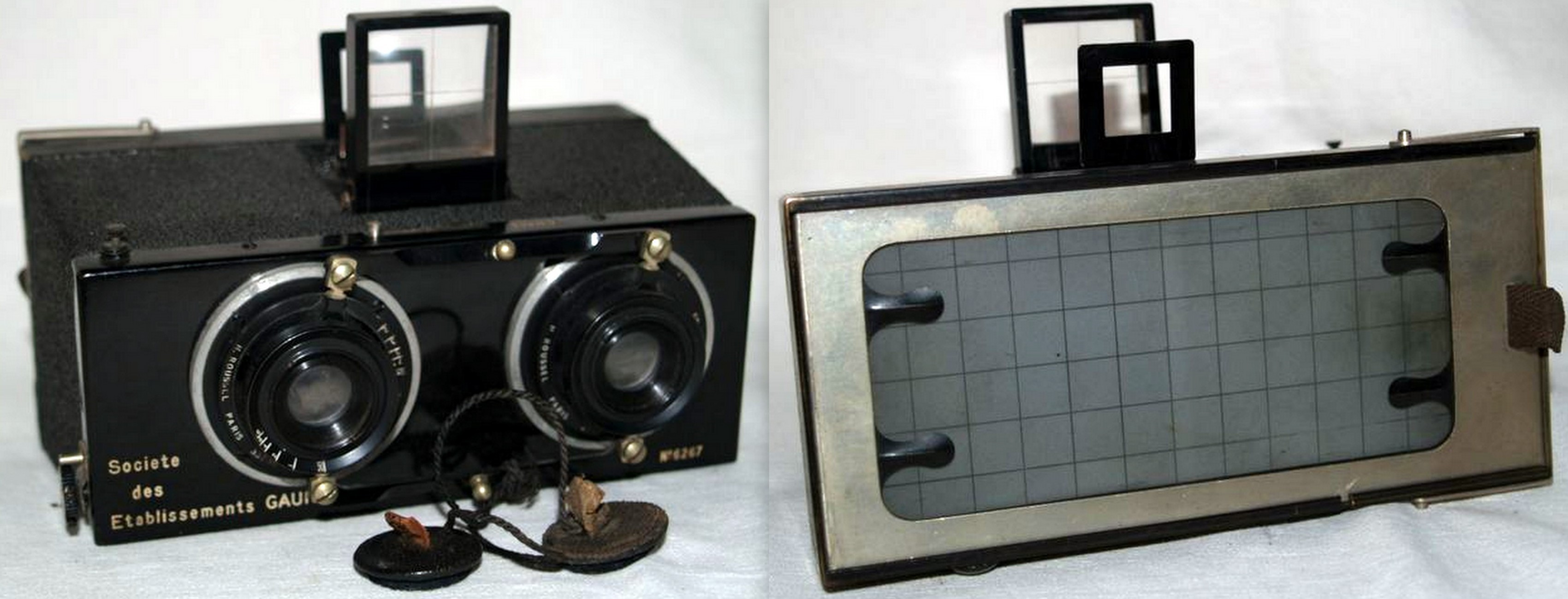 - Une visionneuse de la Société des établissements Gaumont, ca.1922-1929, modèle "Spido métallique D" numérotée 6267. Objectif Trylor de Roussel 6,8/85mm 3 lentilles n°330030 et 330031 et plaques 6 x 13 pour deux vues 6x6.