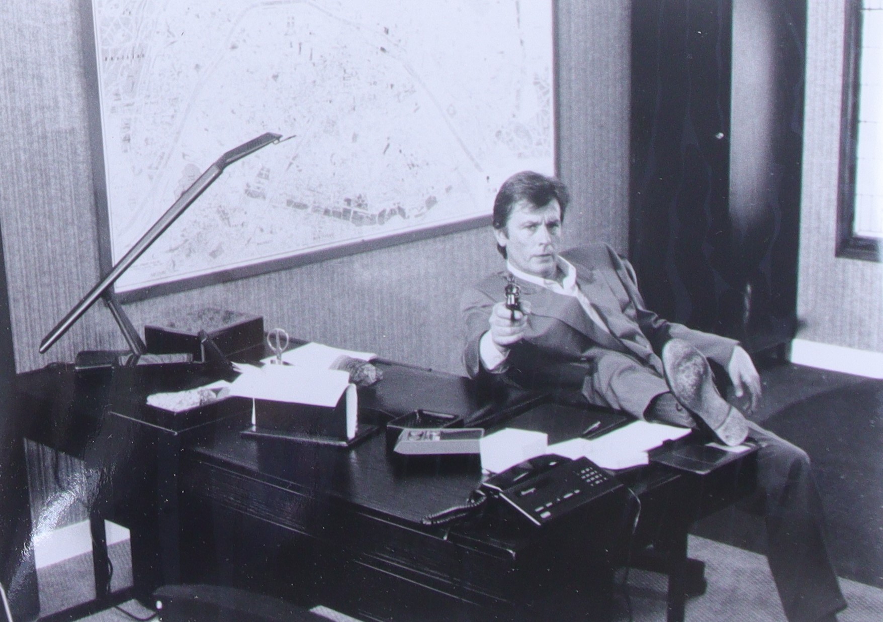 - Alain Delon sur le tournage d'un film, Haut. 12,6 Larg. 17,6 cm.