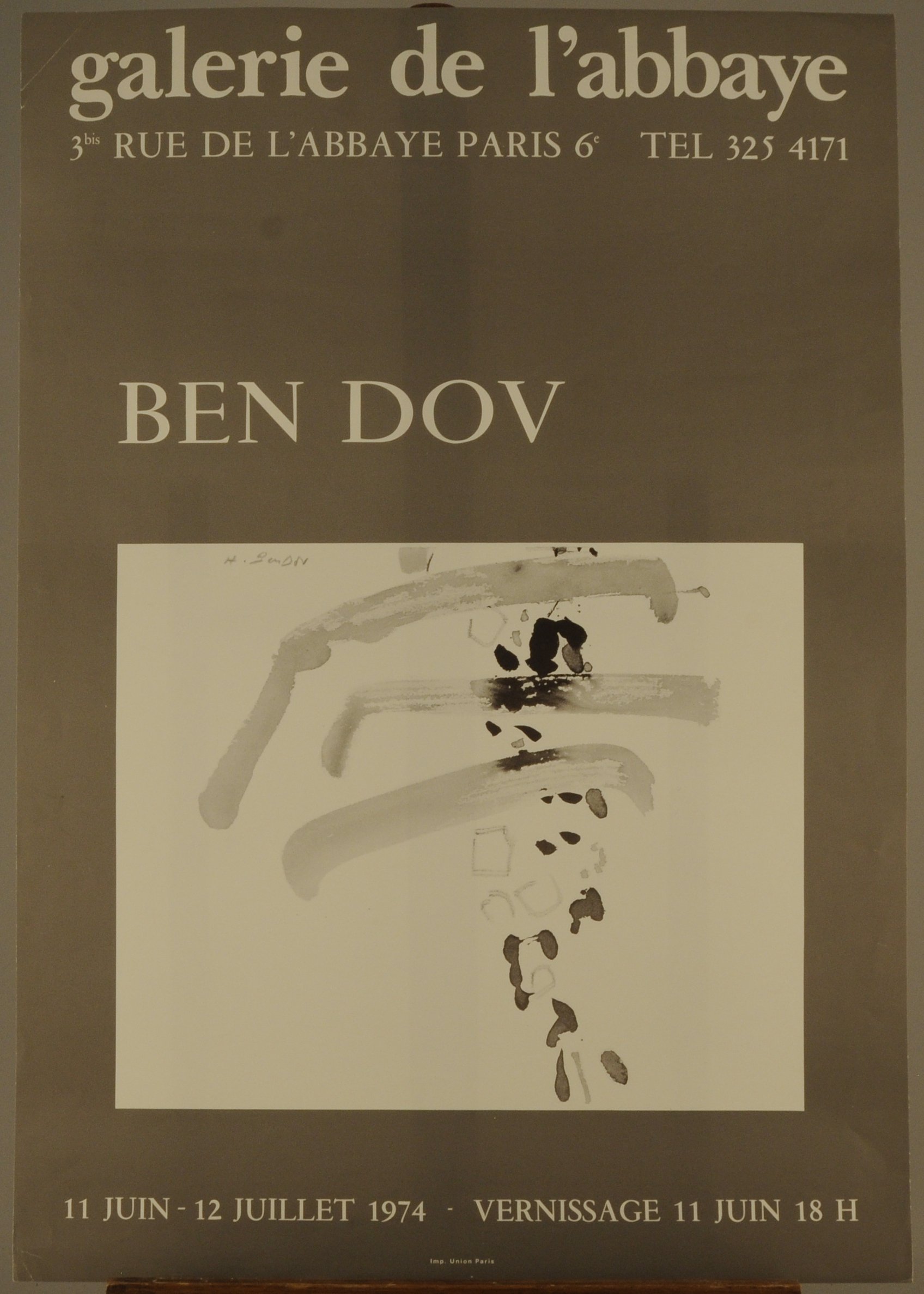 - "BEN DOV, 11 juin - 12 juillet 1974, Galerie de l'abbaye, 3 bis rue de l'abbaye Paris 6e" ;