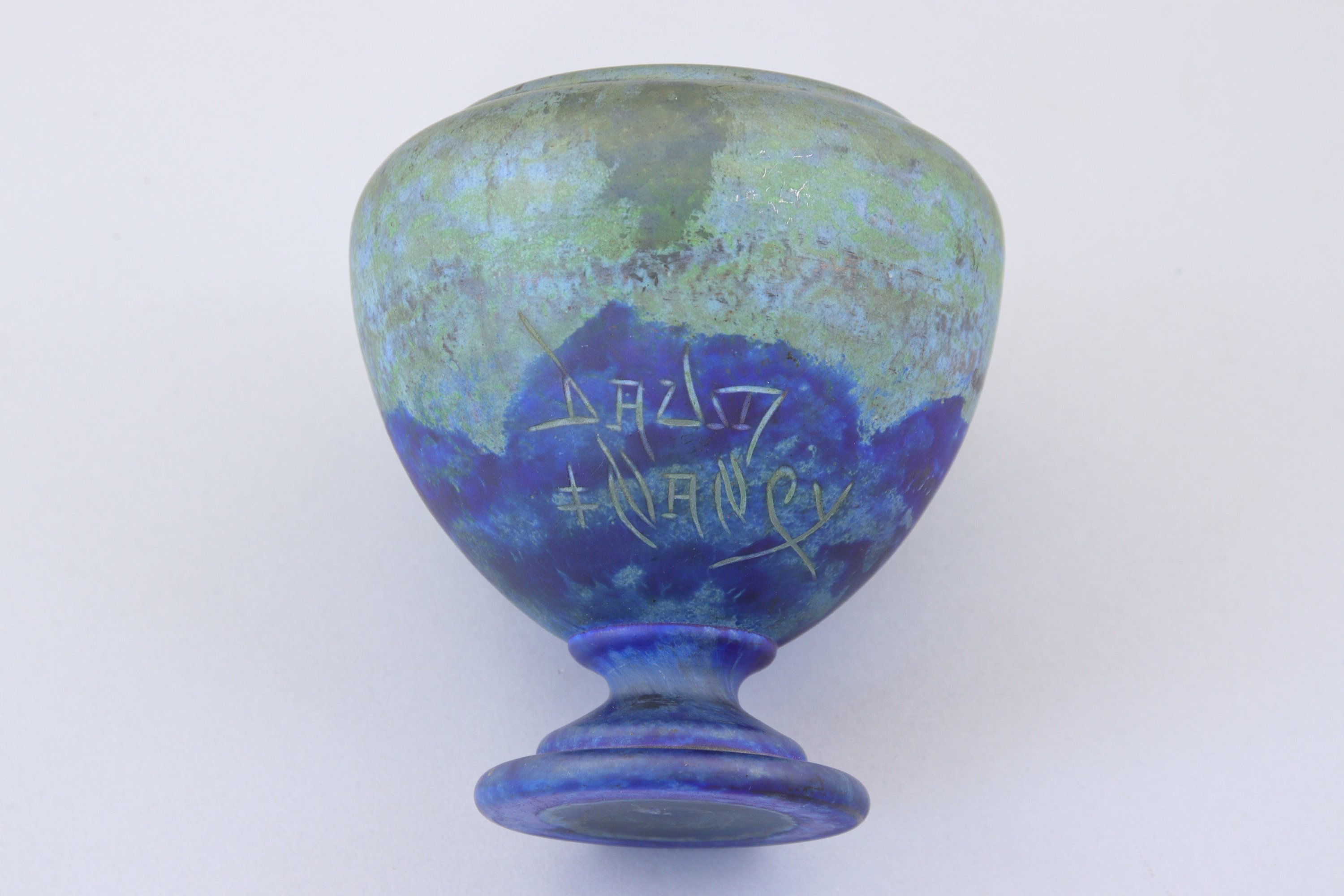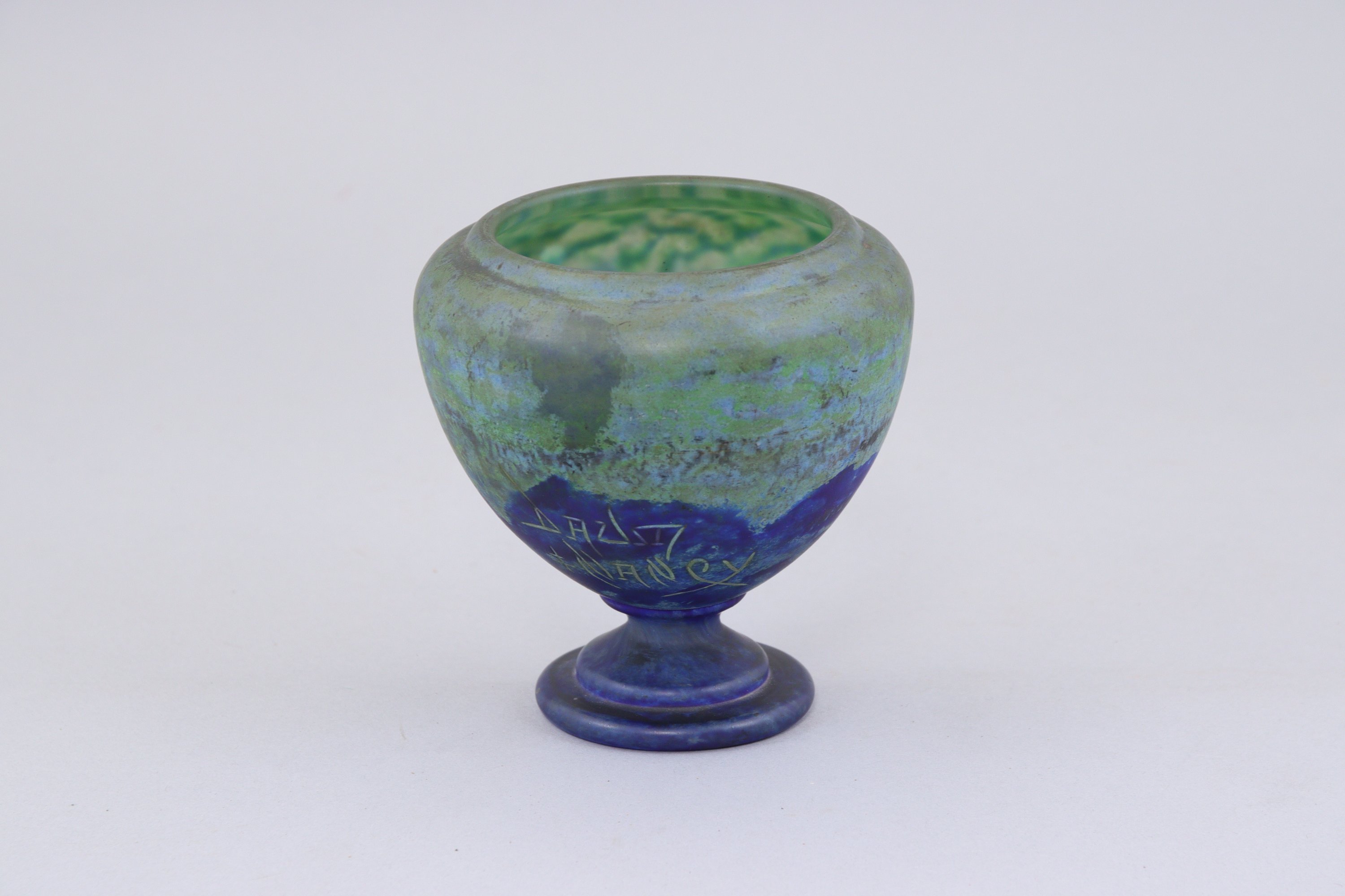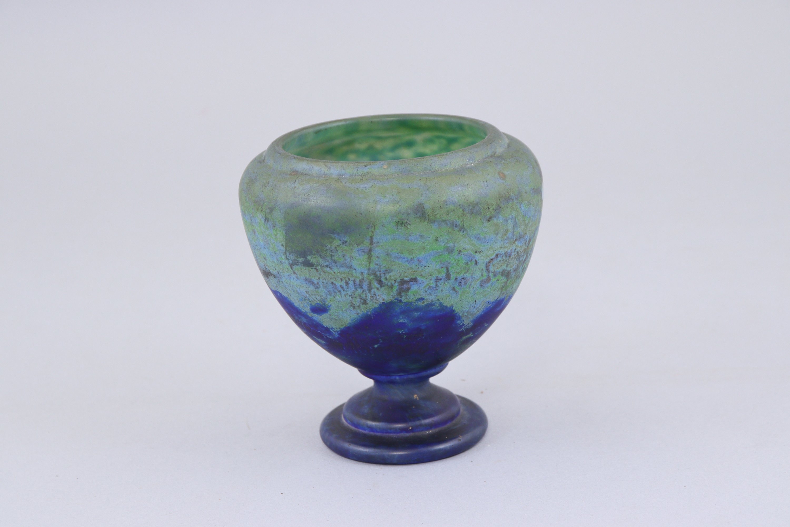 en verre multicouche vert et bleu reposant sur un piédouche.