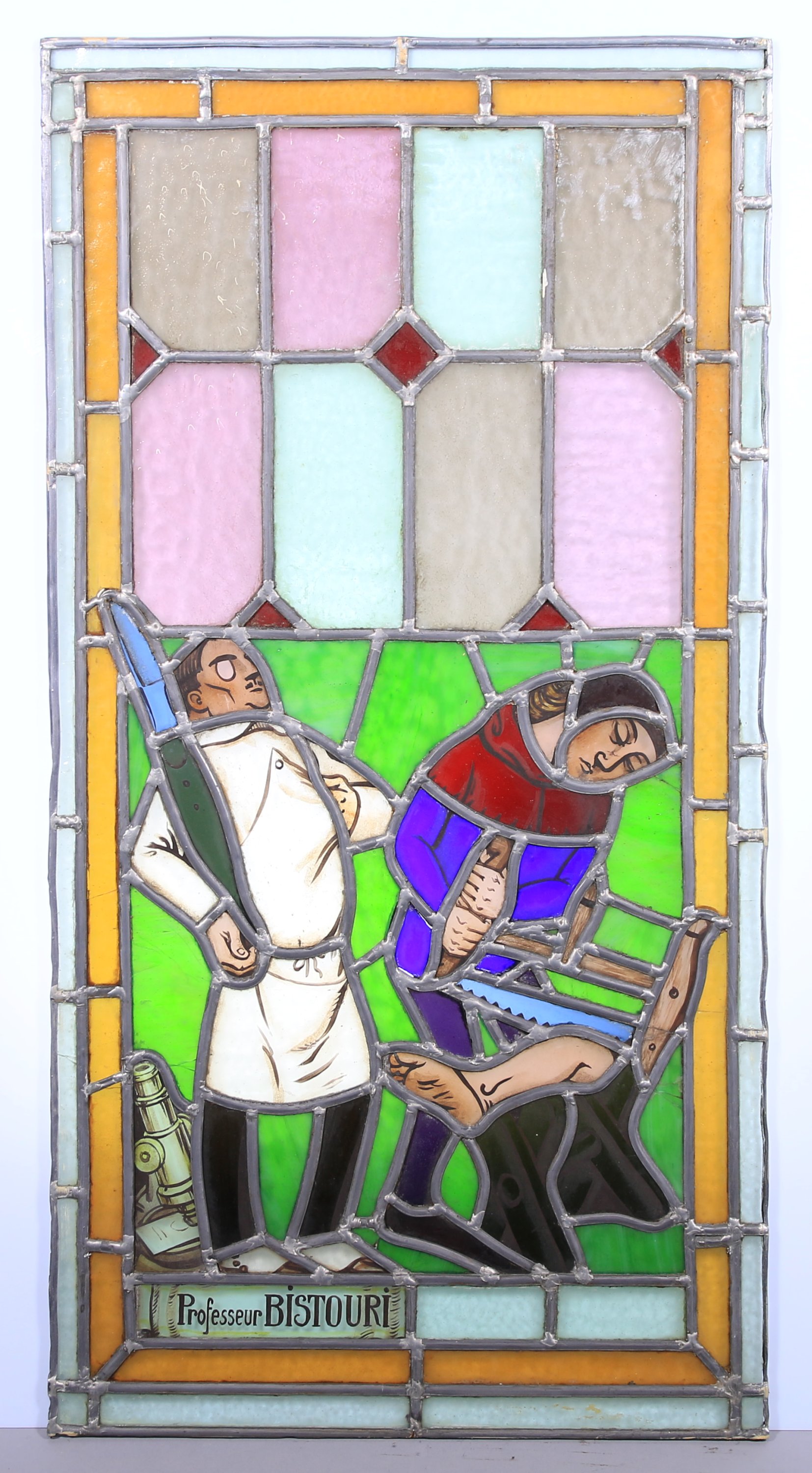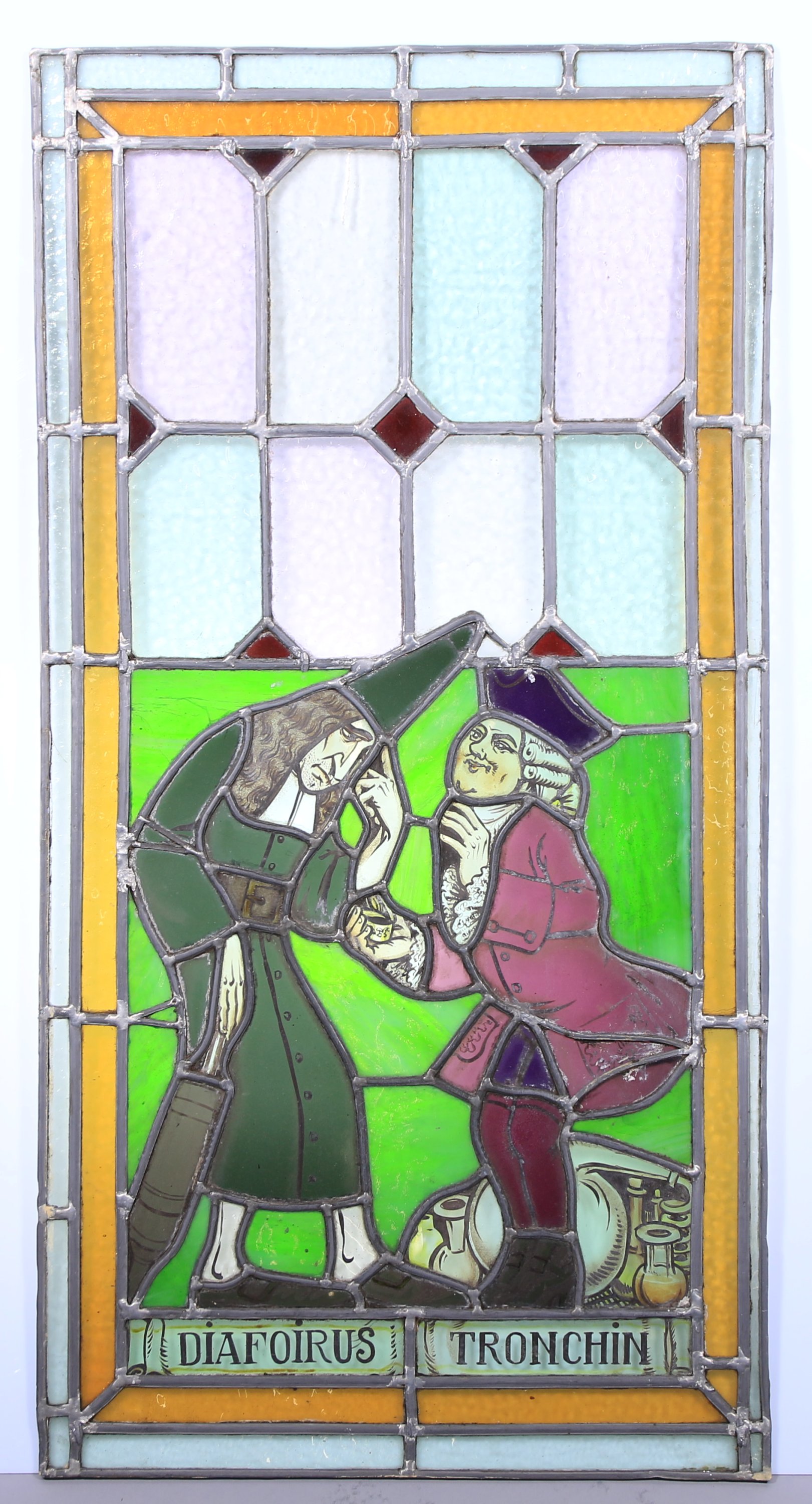 Deux vitraux en verre de couleur, peints et montés au plomb.