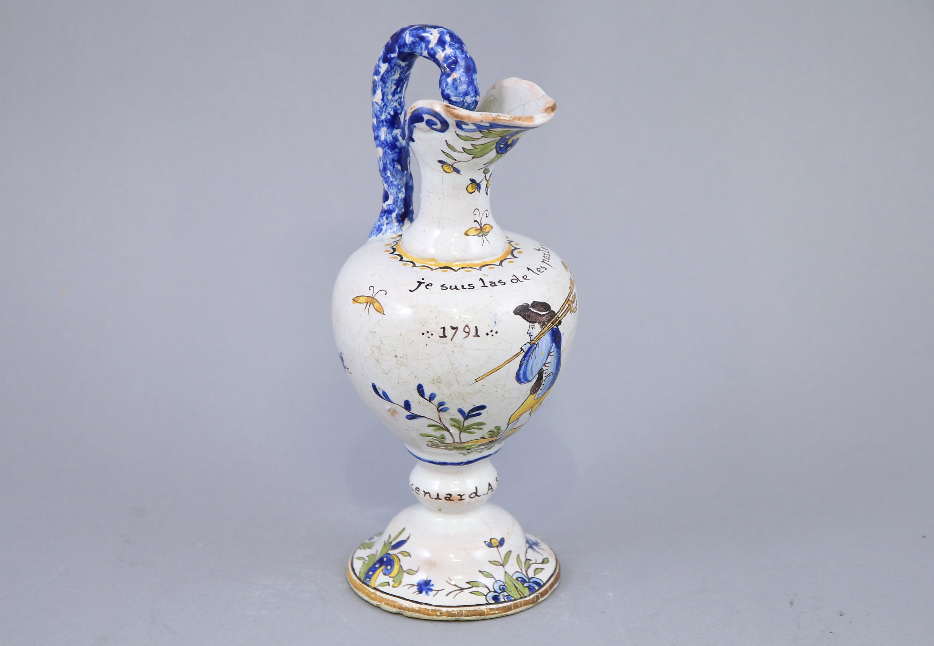 dans le style révolutionnaire d’un homme portant sur l’épaule une épée et une crosse sous l’inscription « je suis las de les porter » et la date 1791.