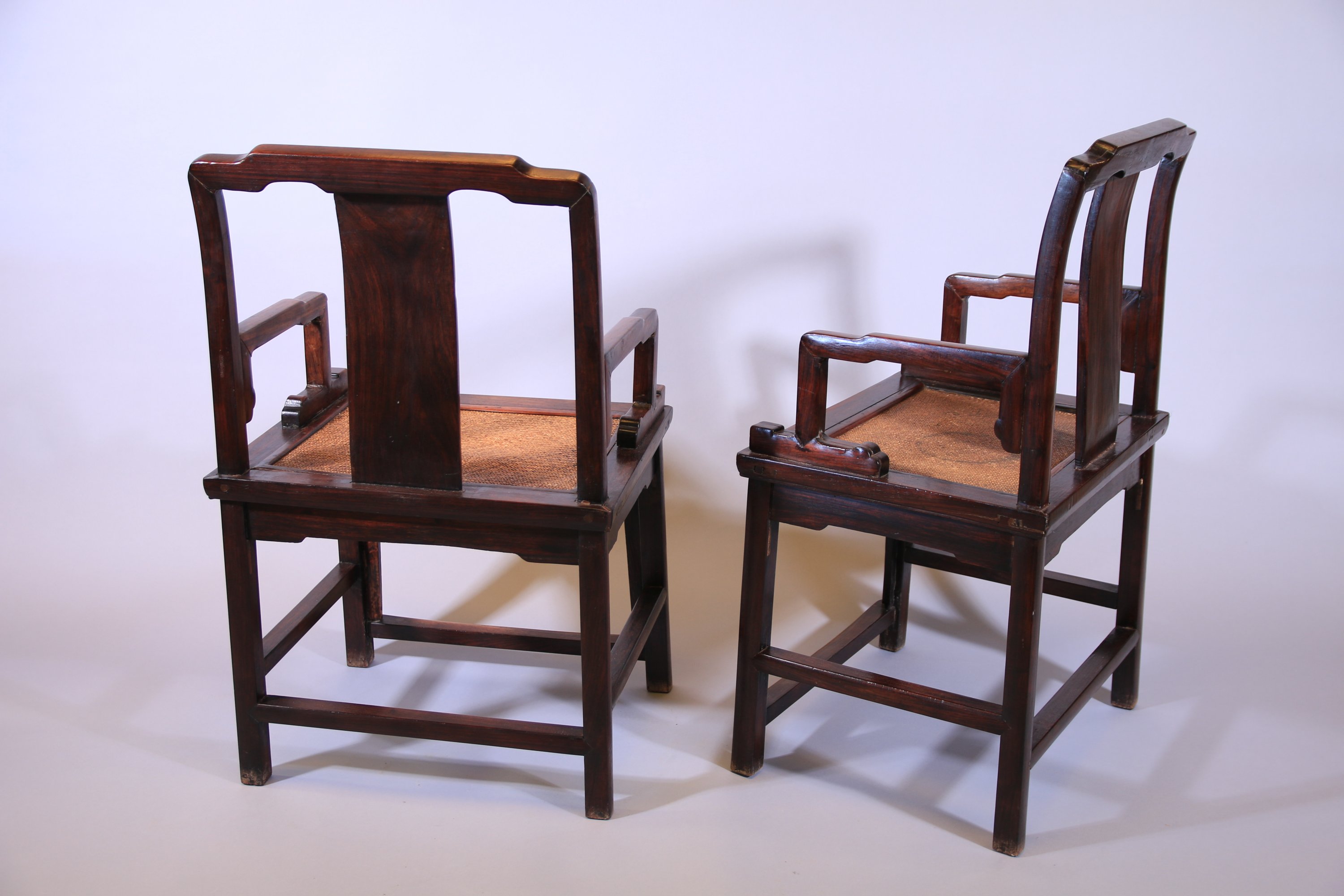 en bois et fer, à assise cannée et décor d'un masque de taotié.