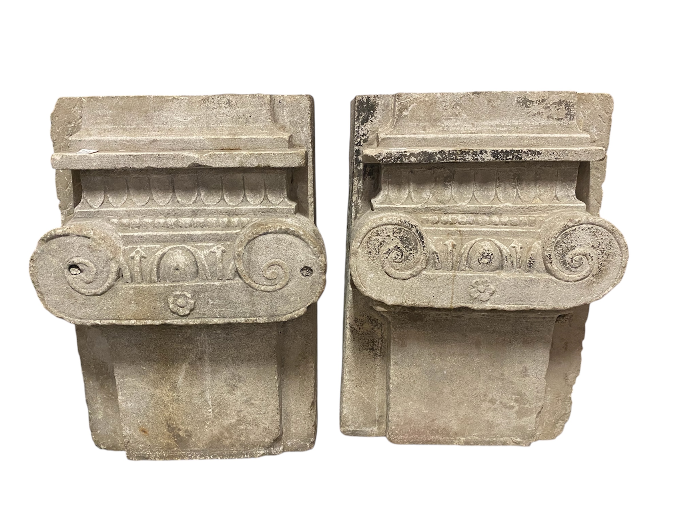 en pierre se composant de chapiteaux ioniques surmontés de rang de perles et feuilles d'eau et se prolongeant par des pilastres.