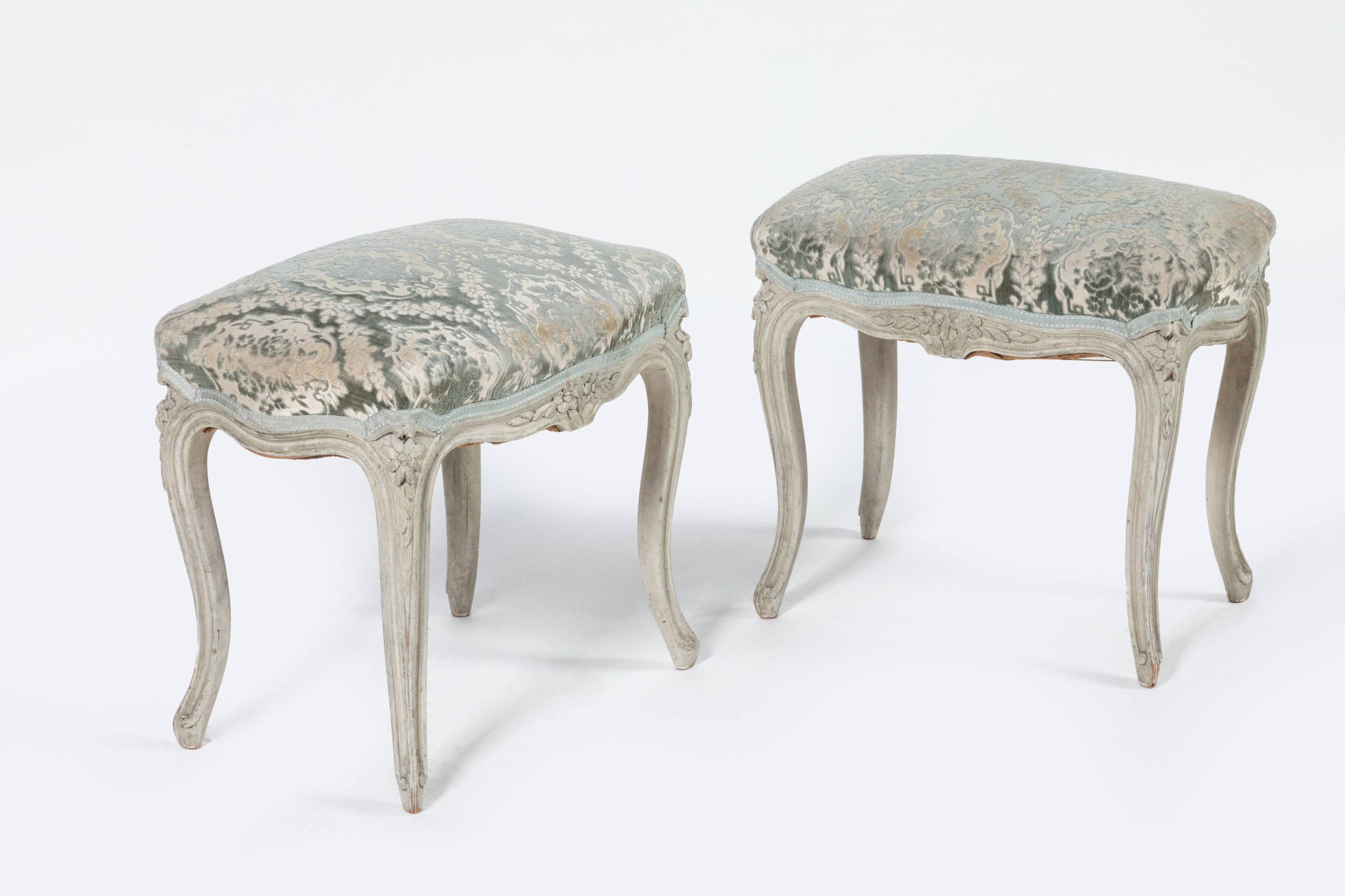 en bois mouluré, sculpté et laqué crème de forme rectangulaire, à la ceinture mouvementée à décor de deux fleurs, reposant sur quatre pieds cambrés surmontés d'une fleurette.