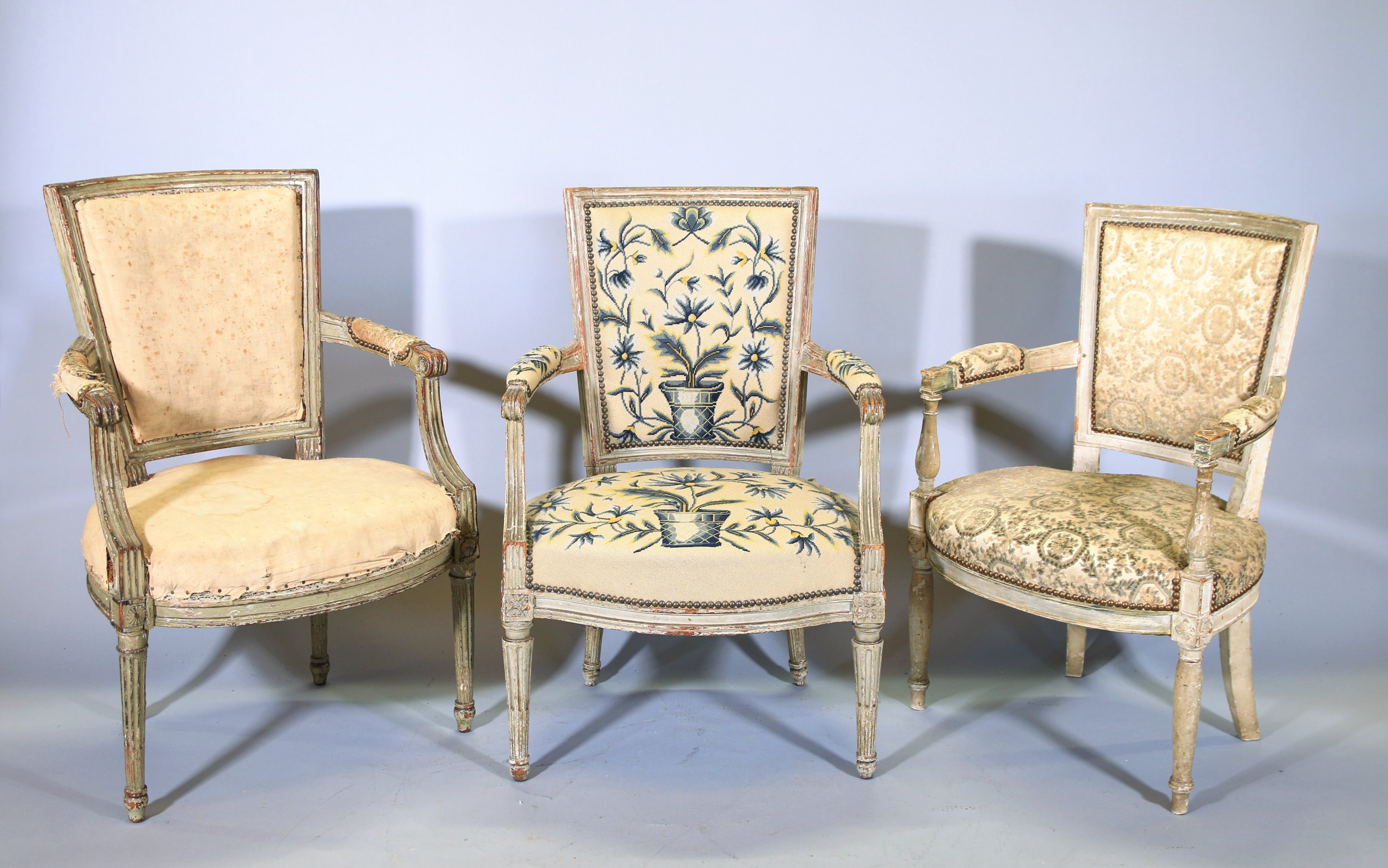 Deux formant paire, le troisième avec des accotoirs balustres.