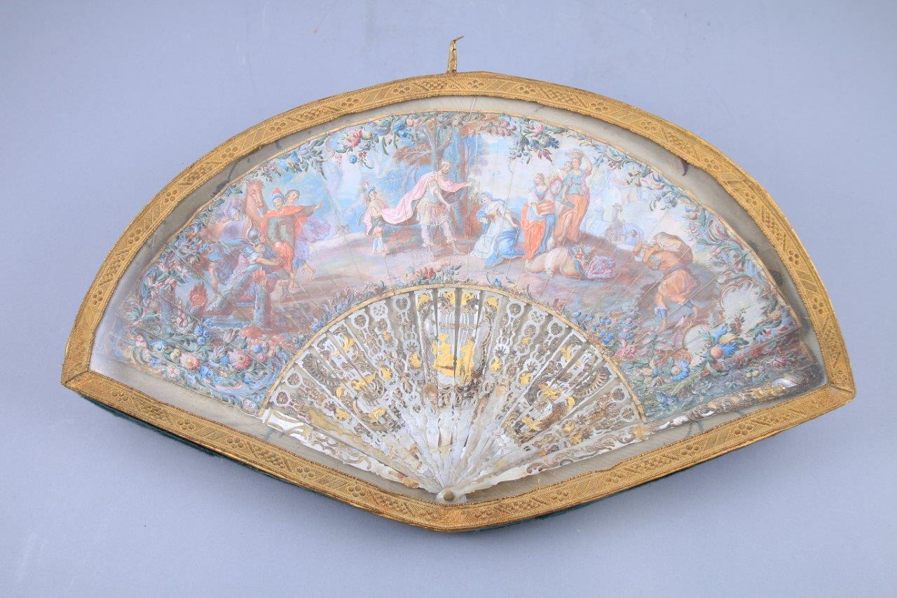 à brins et panaches en nacre. La feuille à décor d'une scène mythologique.