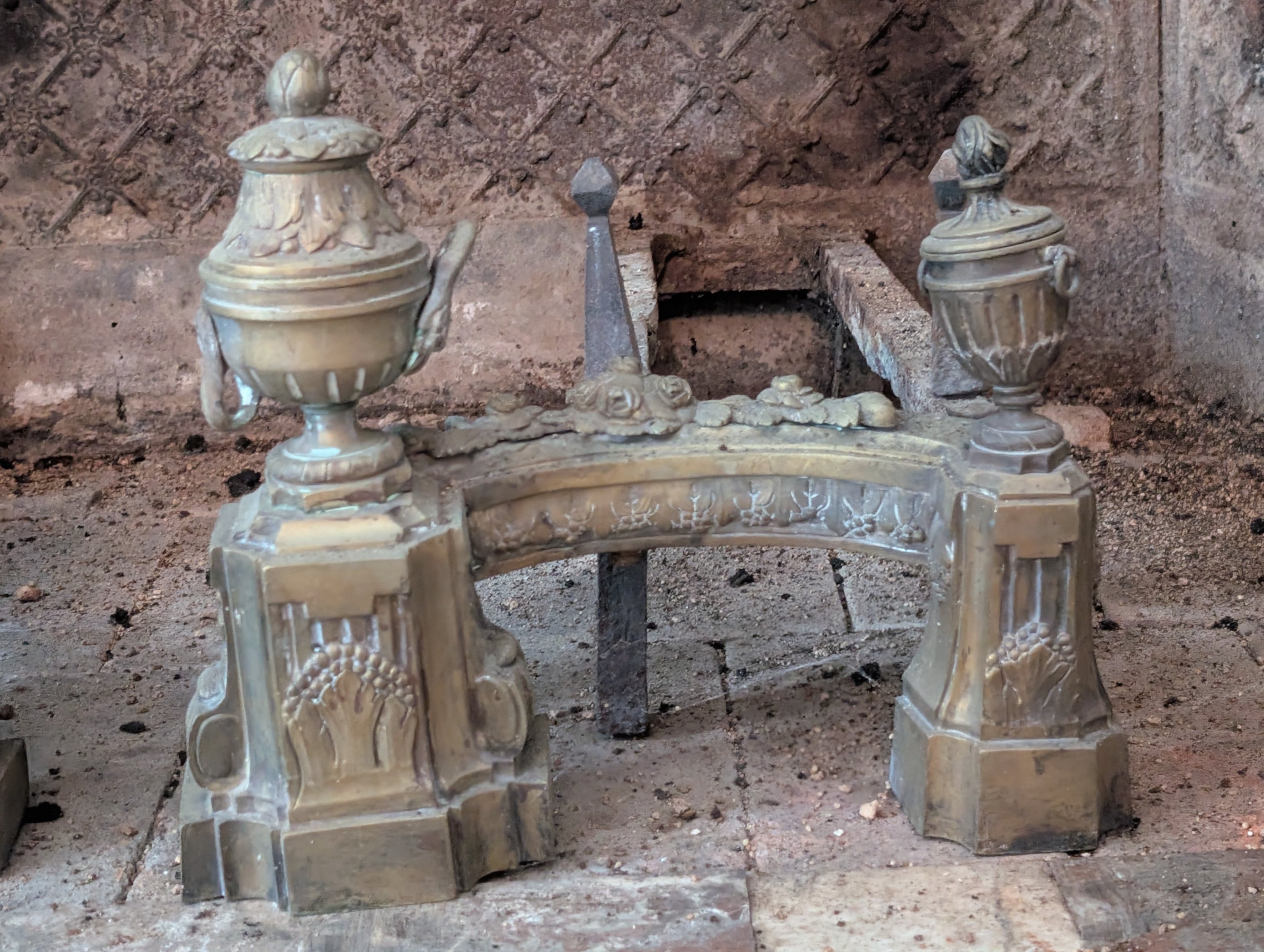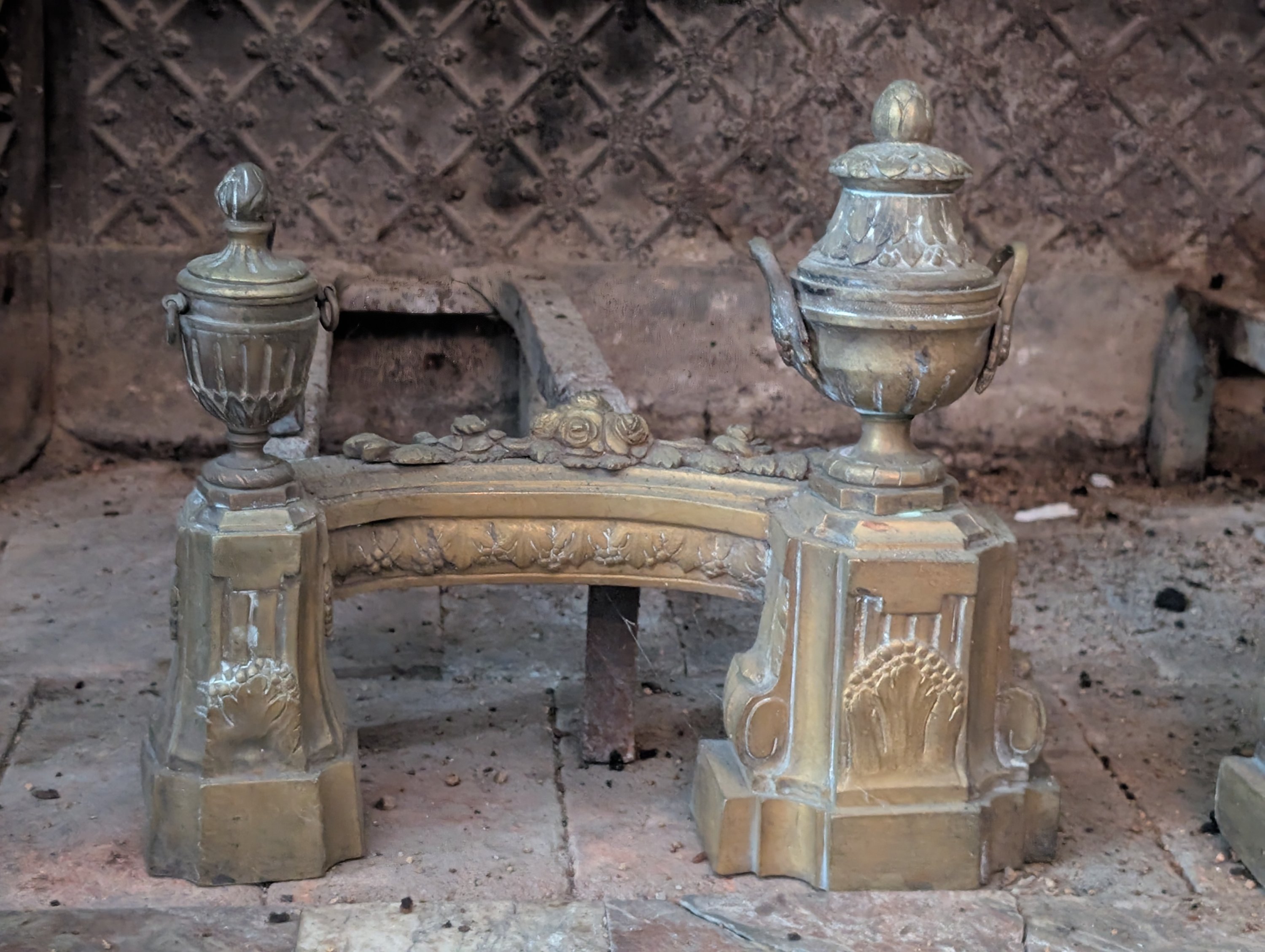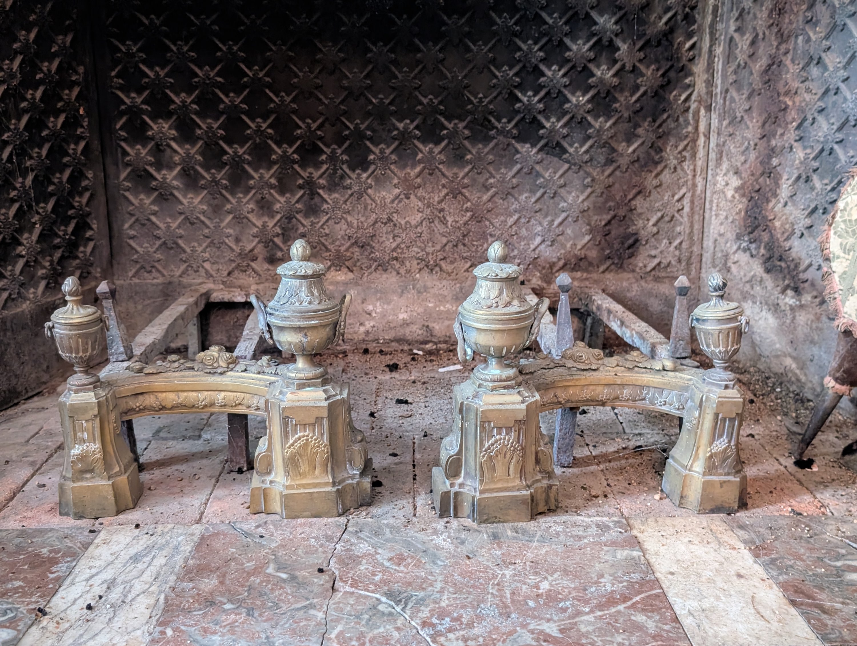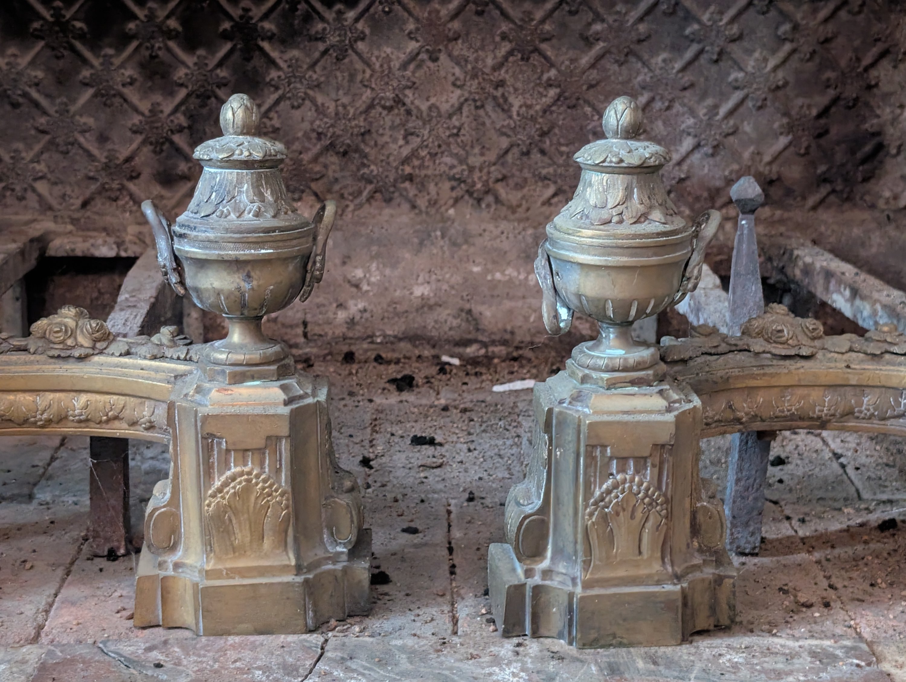 Paire de chenets aux pots à feu Louis XVI