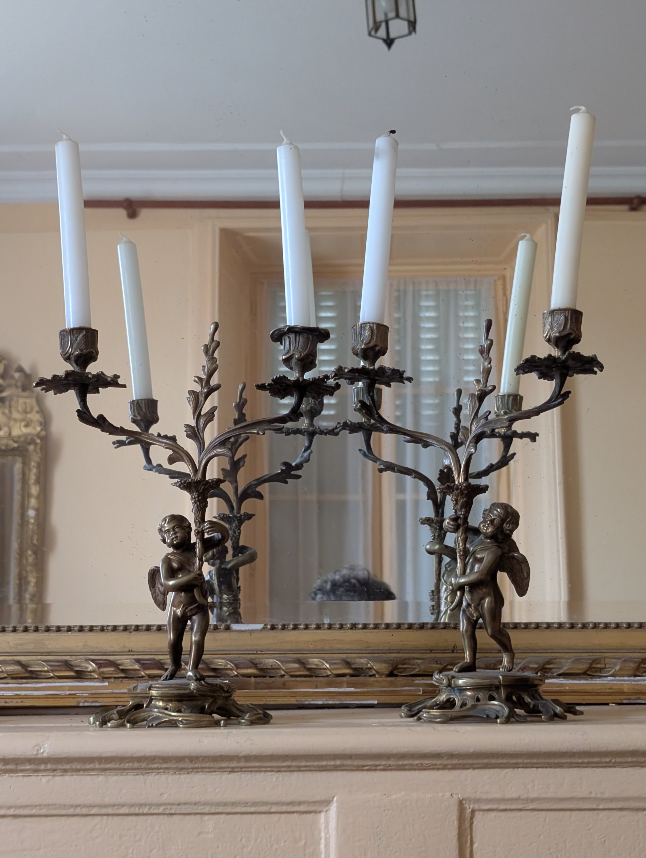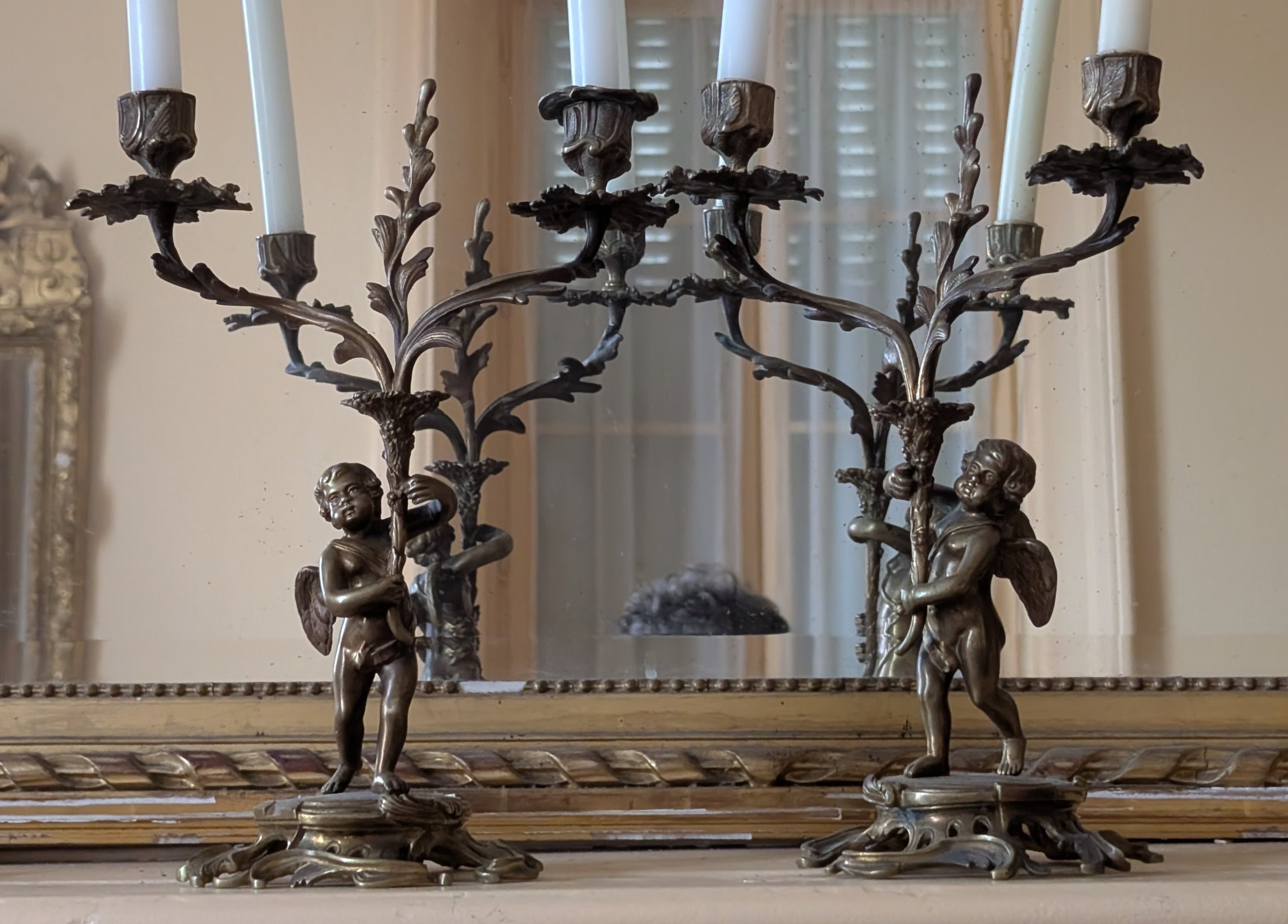 Paire de bougeoirs aux putti