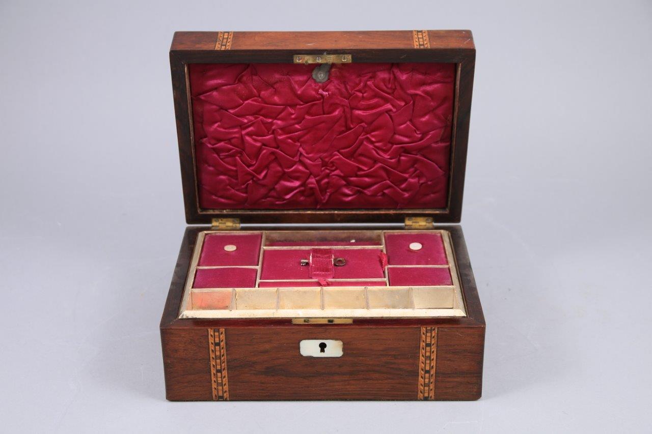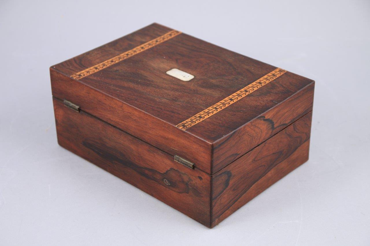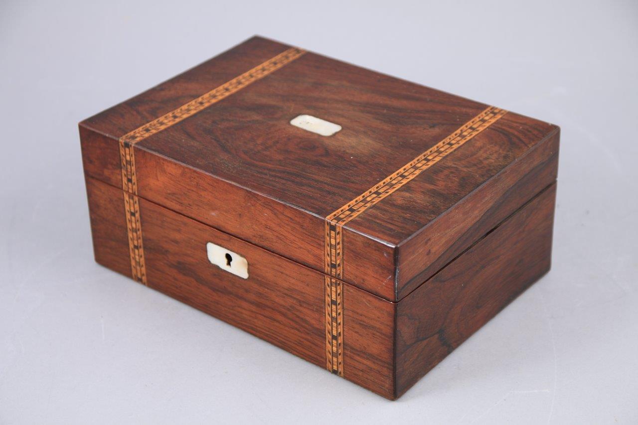 en palissandre et filets de bois clair. Entrées de serrure et cartouche en nacre.
