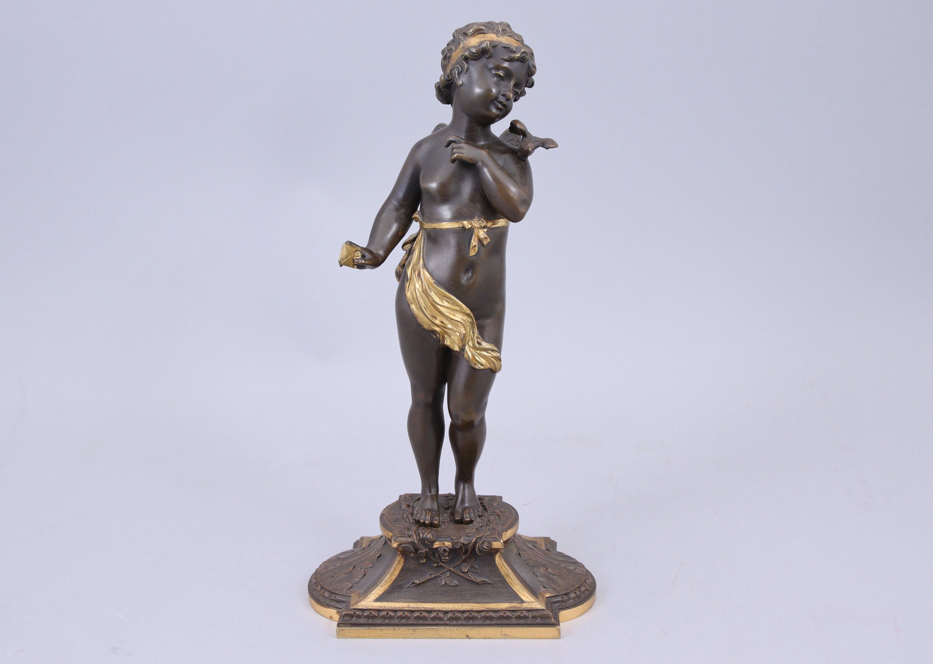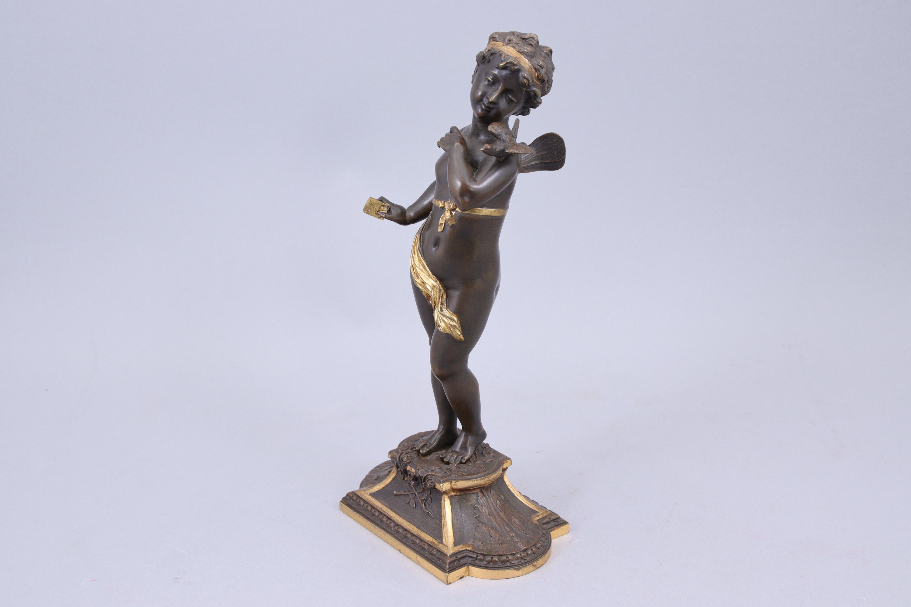 - Eros par Joseph Charles de Blezer (act. 1868-1881). Bronze à patine brune et doré. Signé au revers. Haut. 28,5 cm.