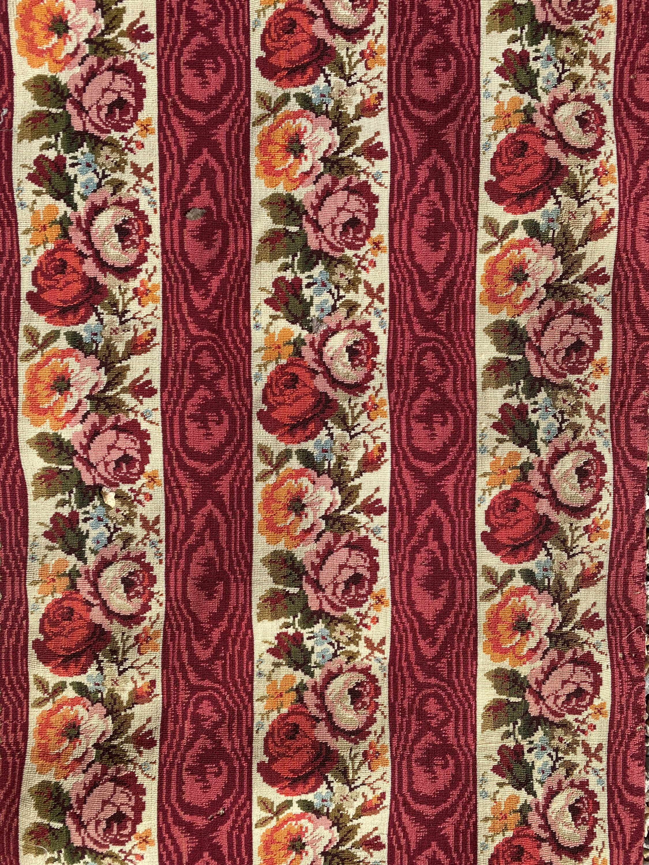 au point mécanique de bandes en guirlandes de roses alternant avec des bandes cramoisies.
