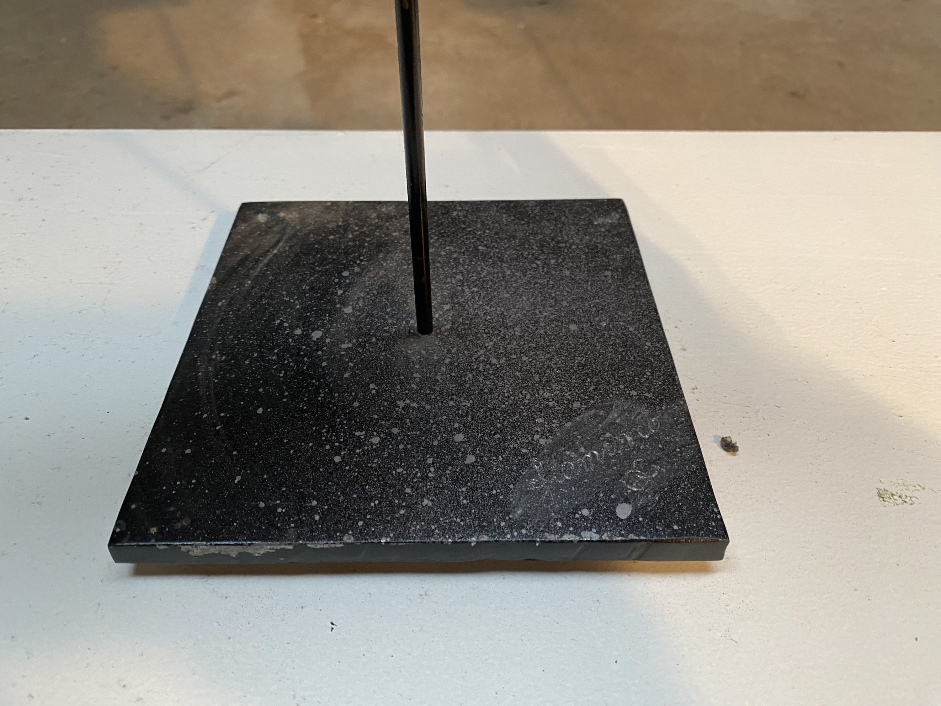 Deux sculptures en aluminium. Le piétement en acier.