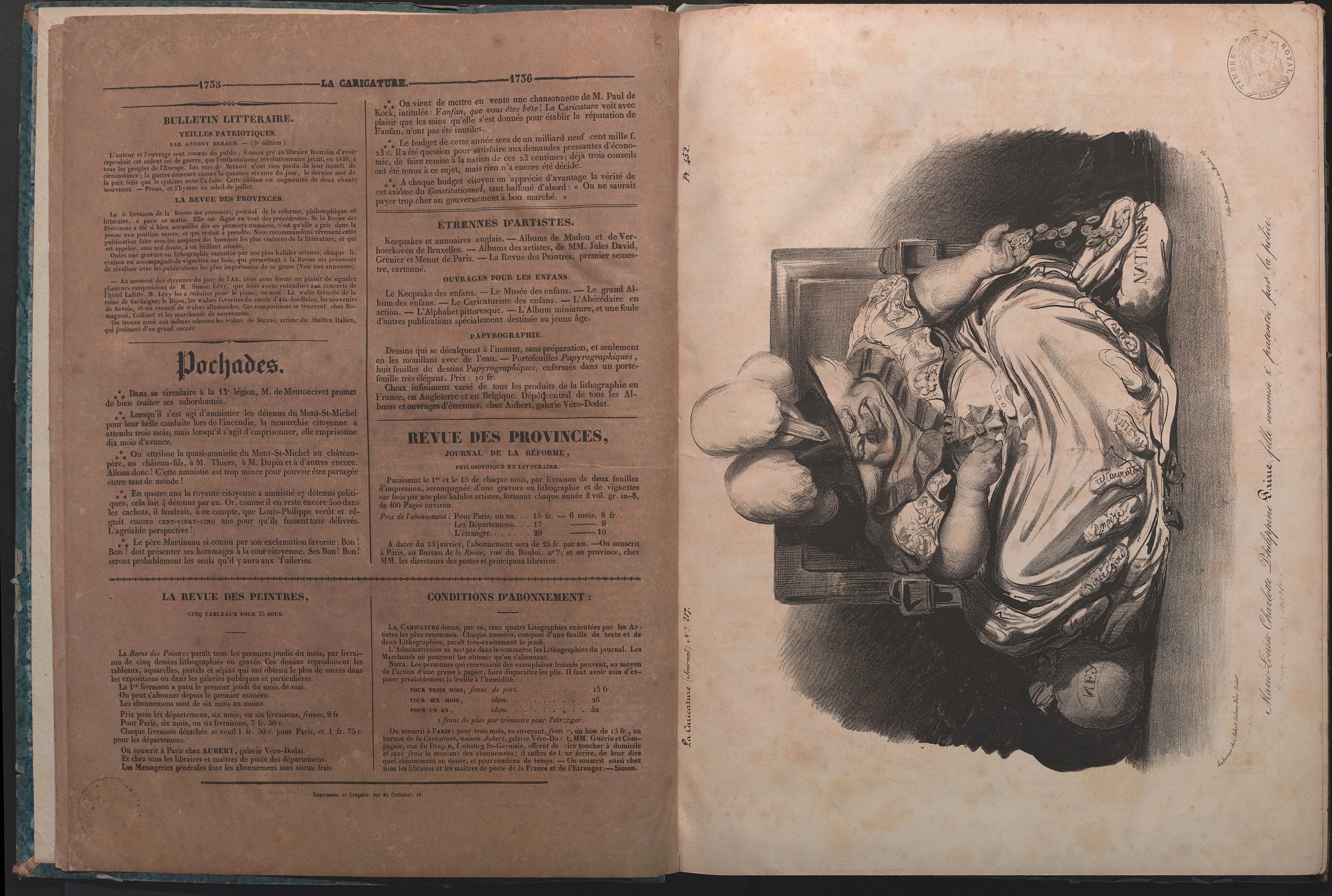 LA CARICATURE POLITIQUE, MORALE, RELIGIEUSE, LITTERAIRE ET SCENIQUE, HEBDOMADAIRE SATIRIQUE ILLUSTRE, 1835