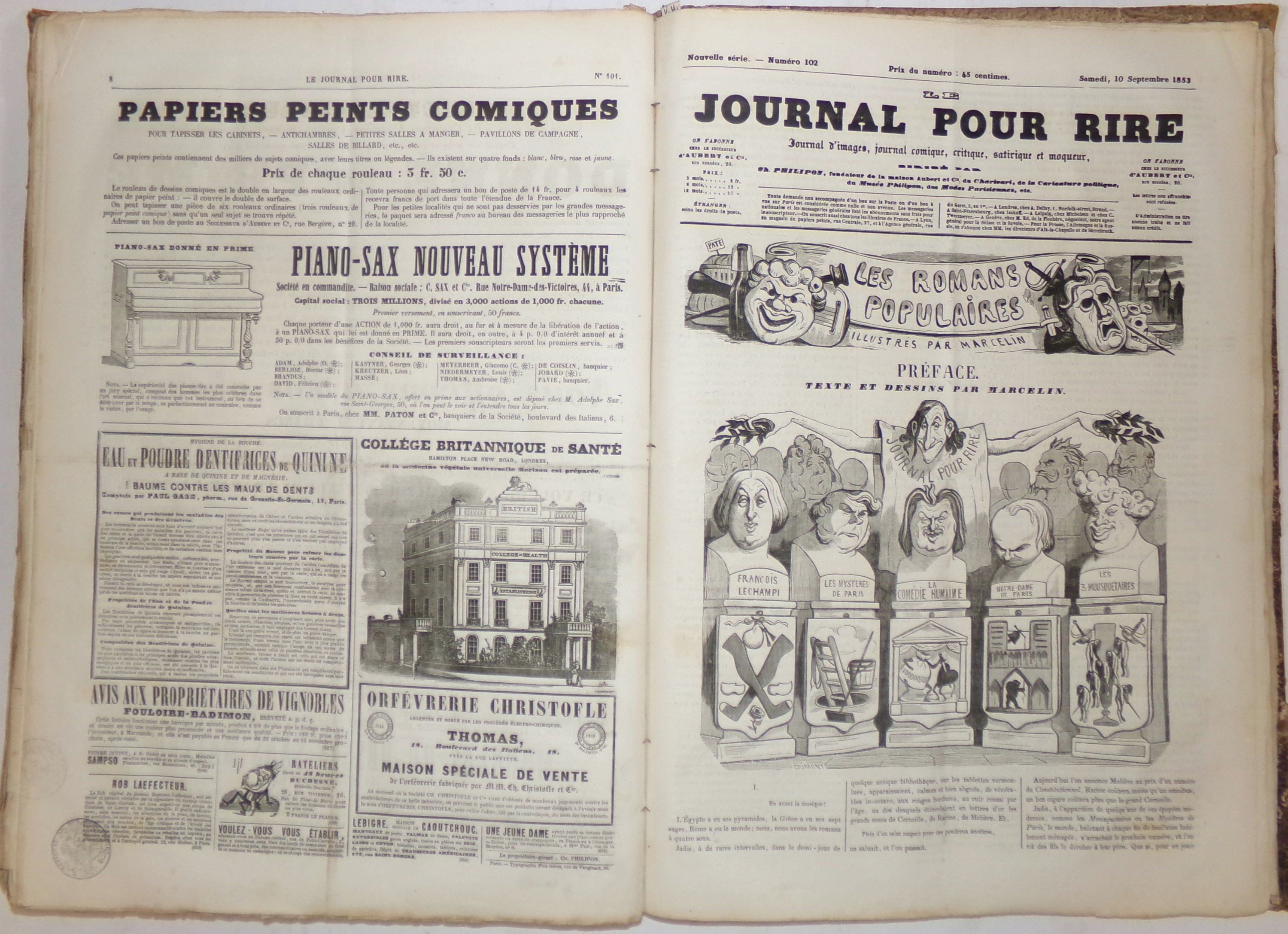 (1 vol.) n°53 (2 oct. 1852) au 104 (24 sept. 1853) complet (qqs petits mques et déchirures marginales) ;