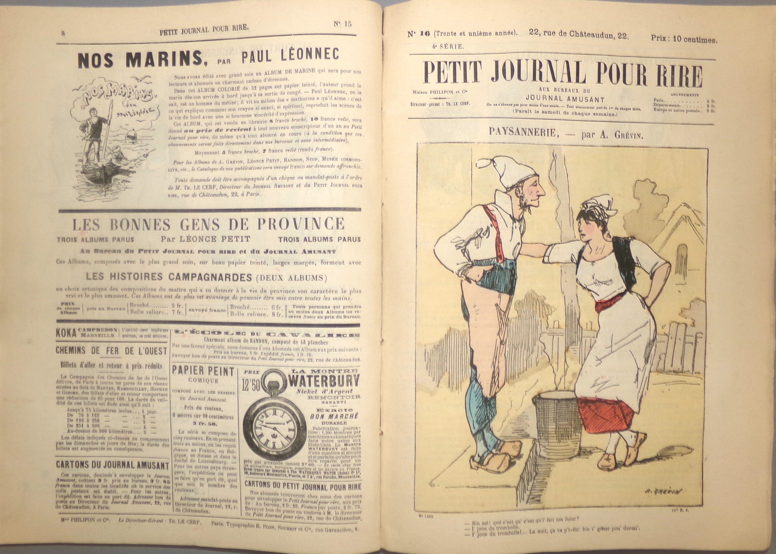 Joint: Petit Journal pour Rire, 1 vol. in-4 broch. n°1 (1887, 4e série, n°1474) au n°53 (n°1526).