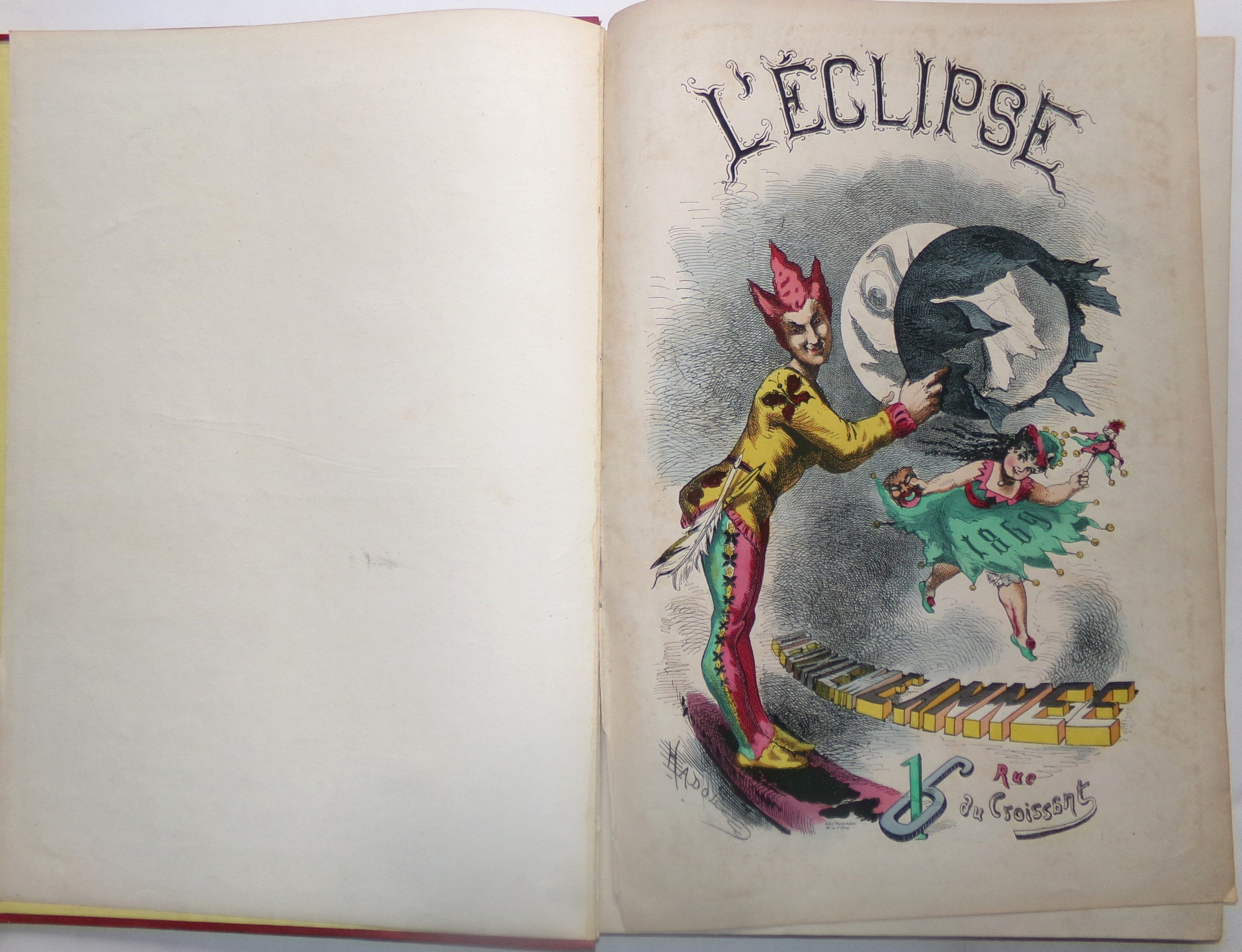 (1 vol.) n°102 (2 janvier 1870) au n° 139 (18 septembre 1870) suivi des suppl. n°1 à 5 (du 18 sept. 1870 à juin 1871, l’Eclipse ne parut pas, mais elle publia durant ces neuf mois d’interruption, 5 feuilles supplémentaires) y compris suppl. du n°119, n°103bis, 105bis, 106bis, 114bis, 116bis, 128bis, 129bis, 132bis, 133bis, 134bis, complet ;