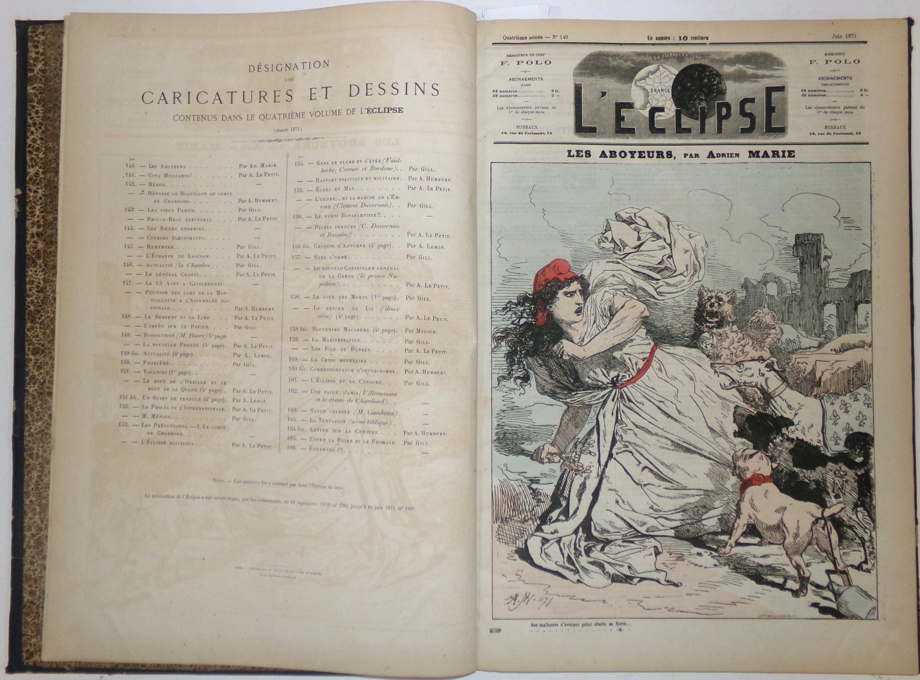(1 vol.): n°140 (juin 1871) au n°166 (31 décembre 1871) y compris les numéros bis: 149b, 151b, 156b, 158b, 160b et 164b ;
