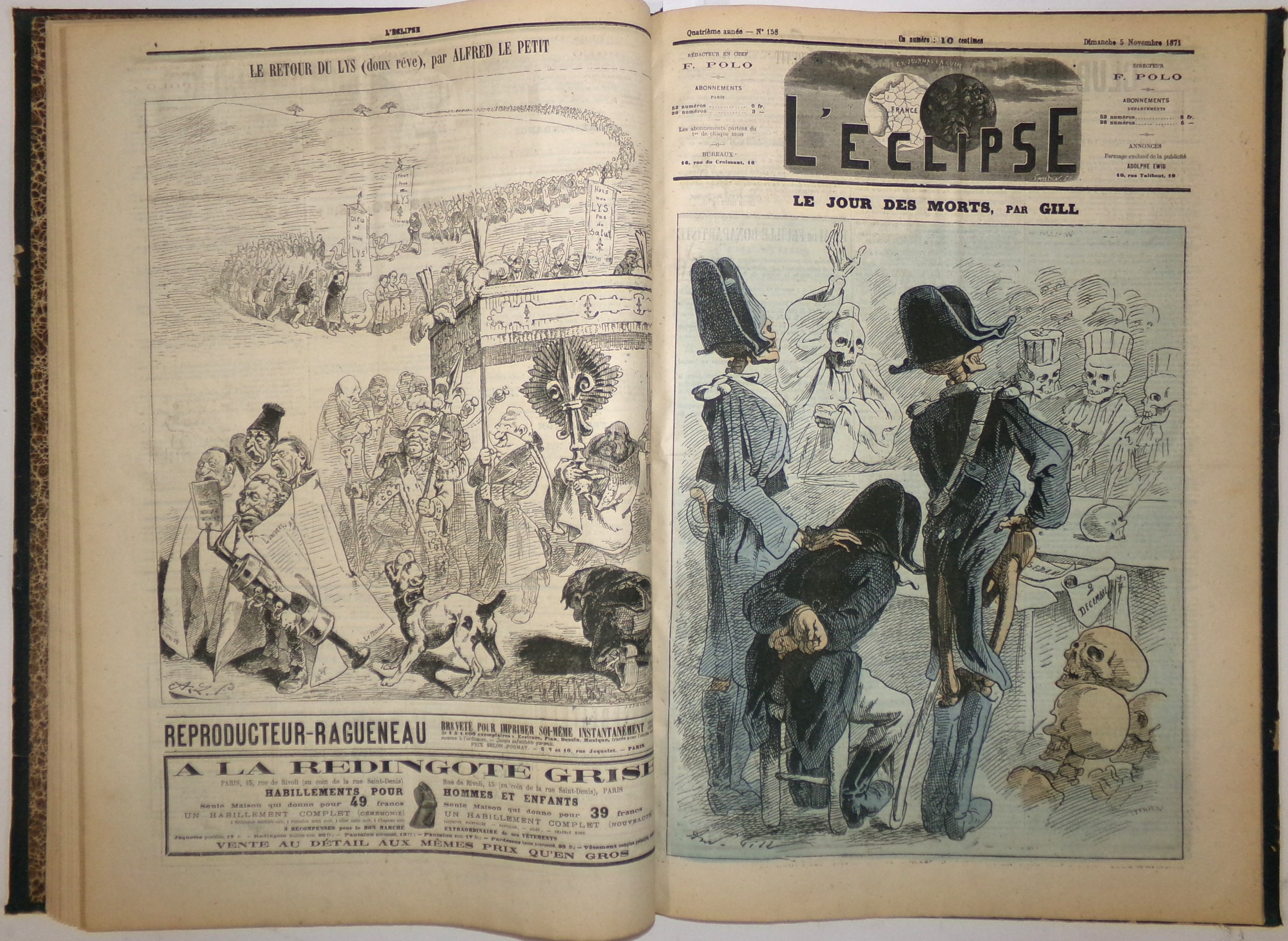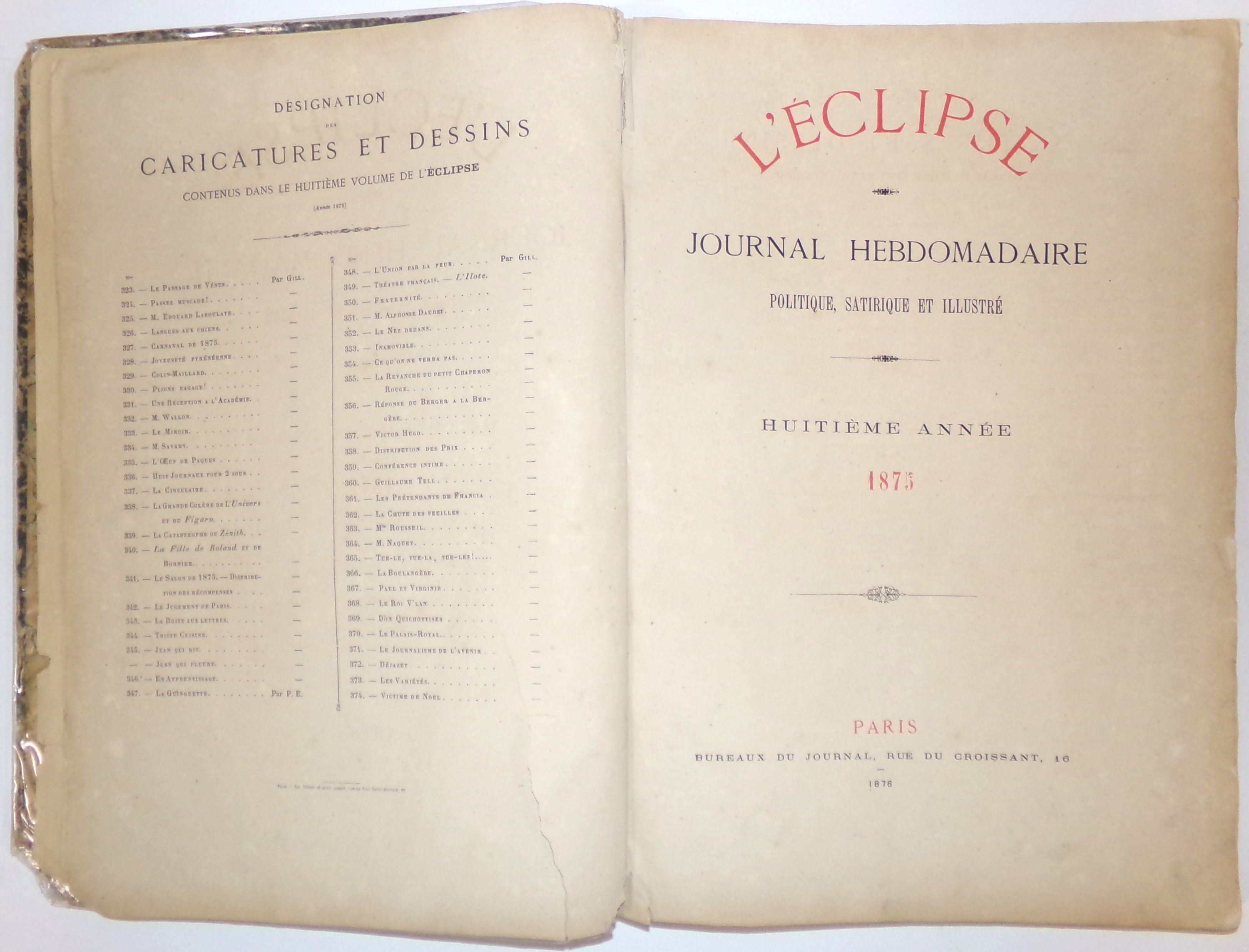 Tirage de luxe en couleurs: n°323 (3 janvier 1875) au n°374 (26 décembre 1875), n°375 (2 janvier 1876) au n°400 (25 juin 1876).