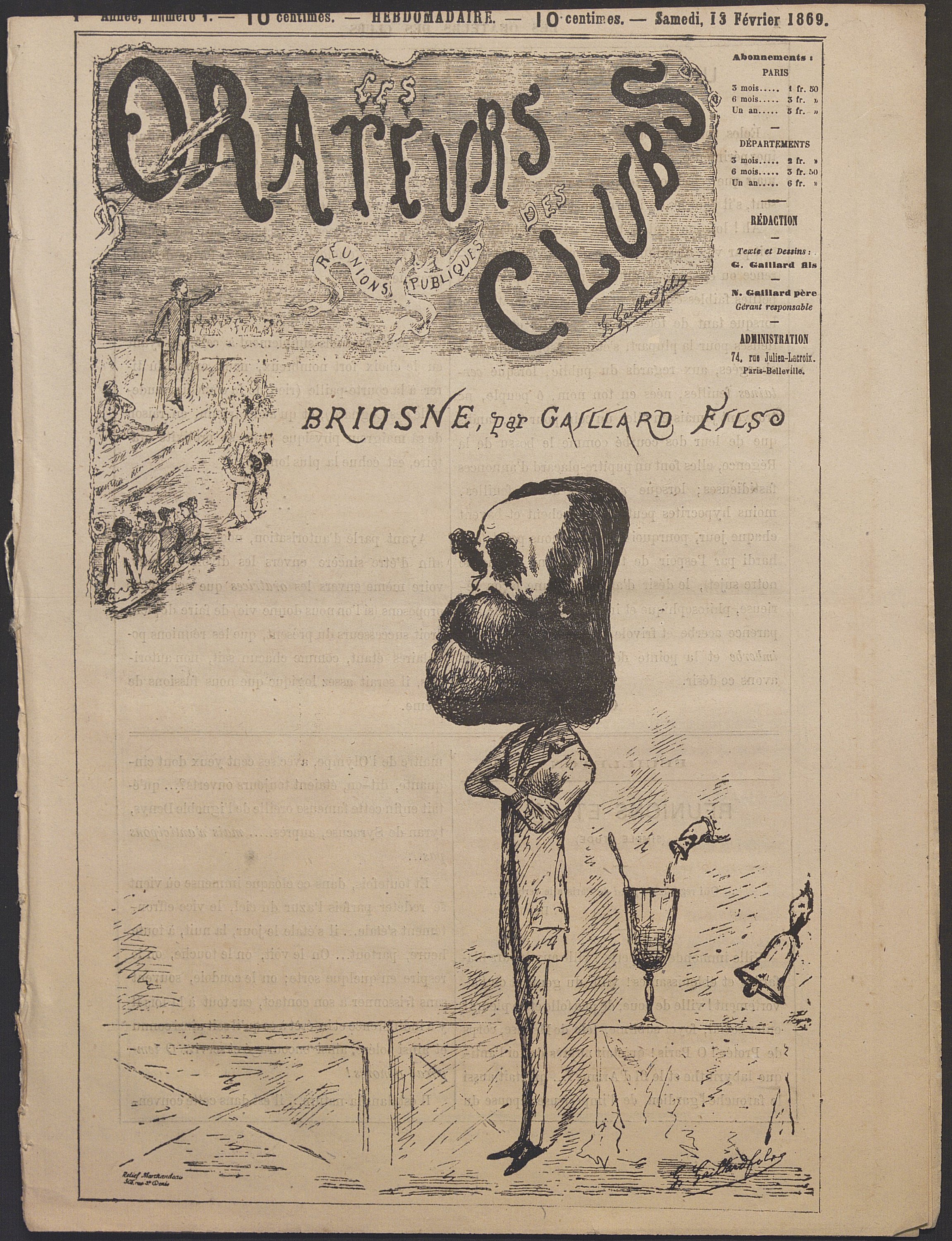 Rarissime hebdomadaire éphémère fondé par Napoléon Gaillard (1815-1900), néo-babouviste, propagandiste de la libre-pensée et de l’athéisme auquel collabore son fils Gustave, ayant pour objectif de faire connaître les orateurs révolutionnaires les plus populaires qui animaient les « clubs rouges. »