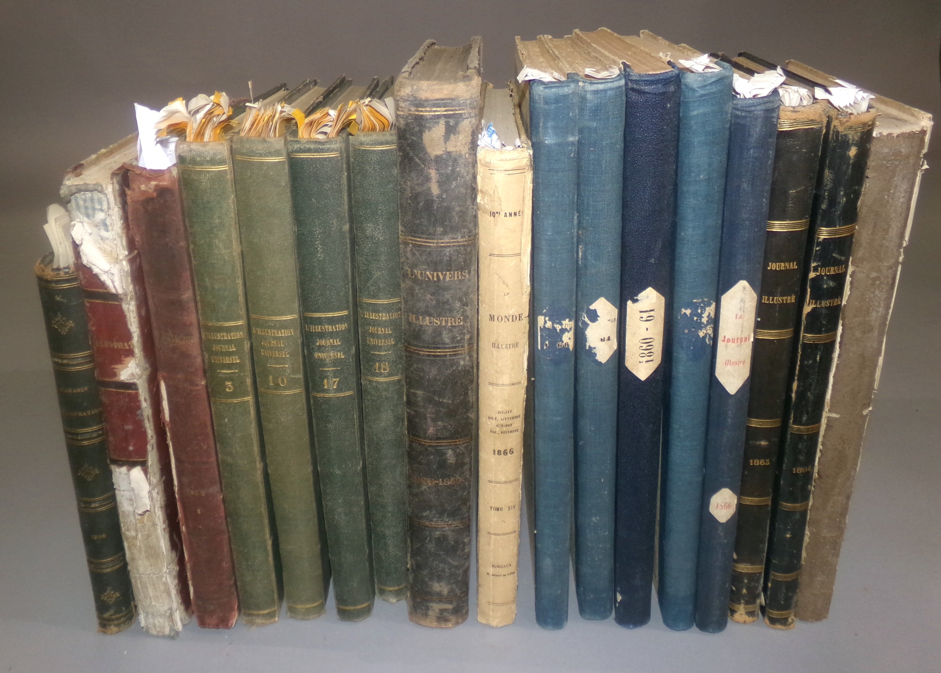 (1 vol.) L’Univers Illustré, n°1 (22 mai 1858) au n°32 (25 déc. 1858), n°33 (1er janv. 1859) au n°80 (24 nov. 1859) + tables des matières ;