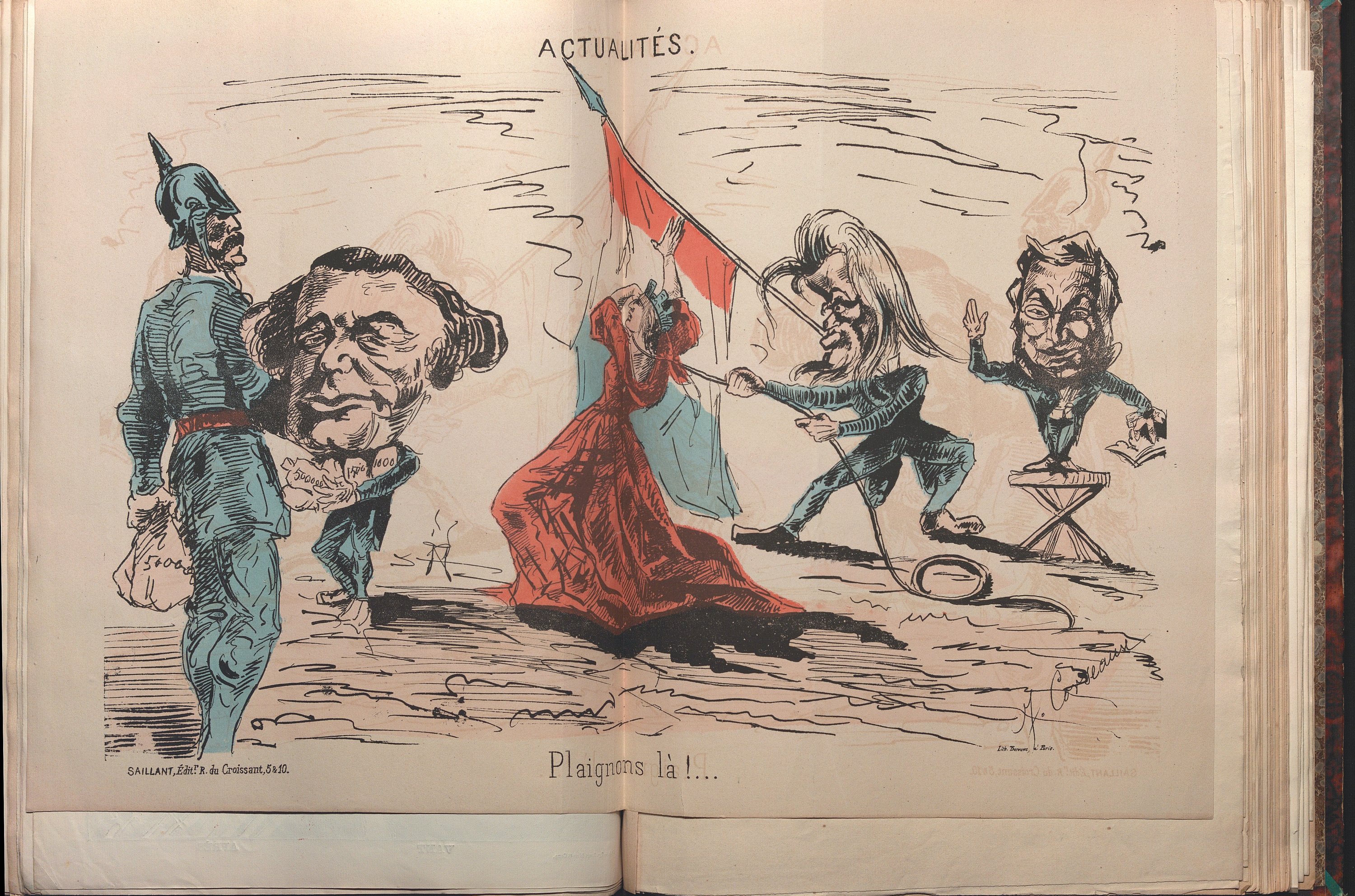 Recueil factice de 192 feuilles volantes, in-4 et in-fol., lithographiées à rehauts de couleurs d’époque, en un vol. in-fol. relié ½ chagrin sur onglets, 1870-1871.
