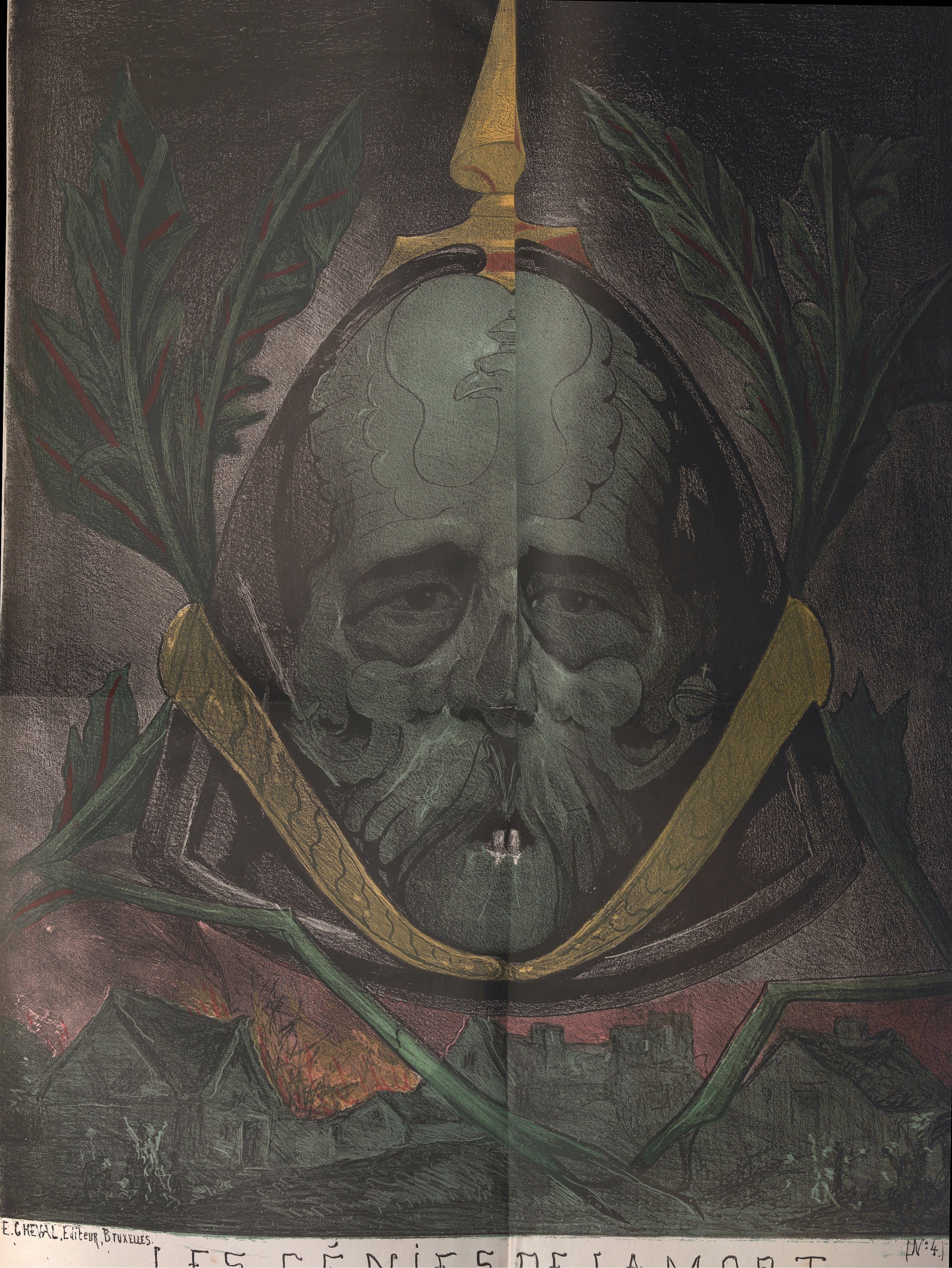 Edmond Guillaume: série Les génies de la mort, 3 planches pliantes ; Triomphe de la Restauration ;
