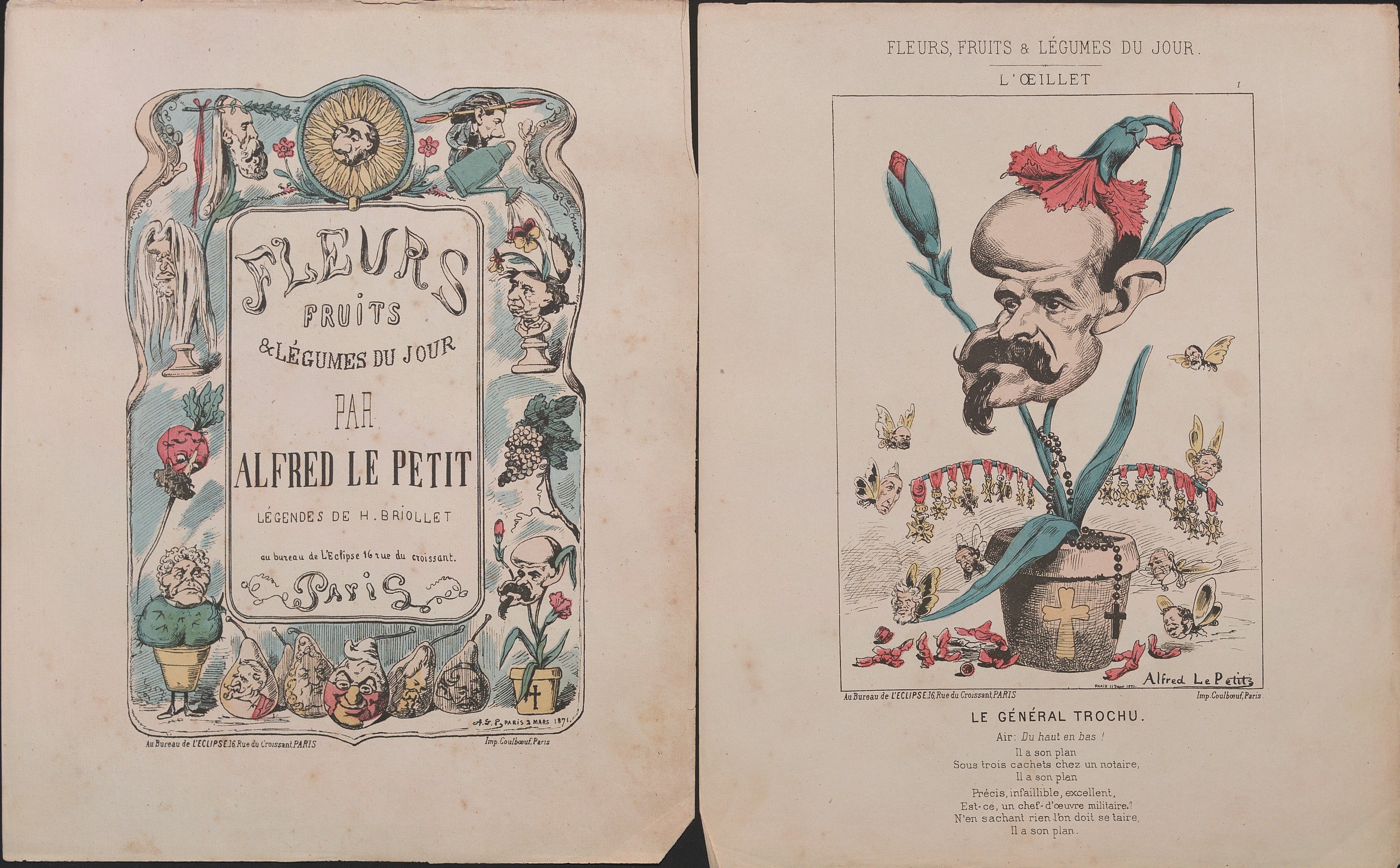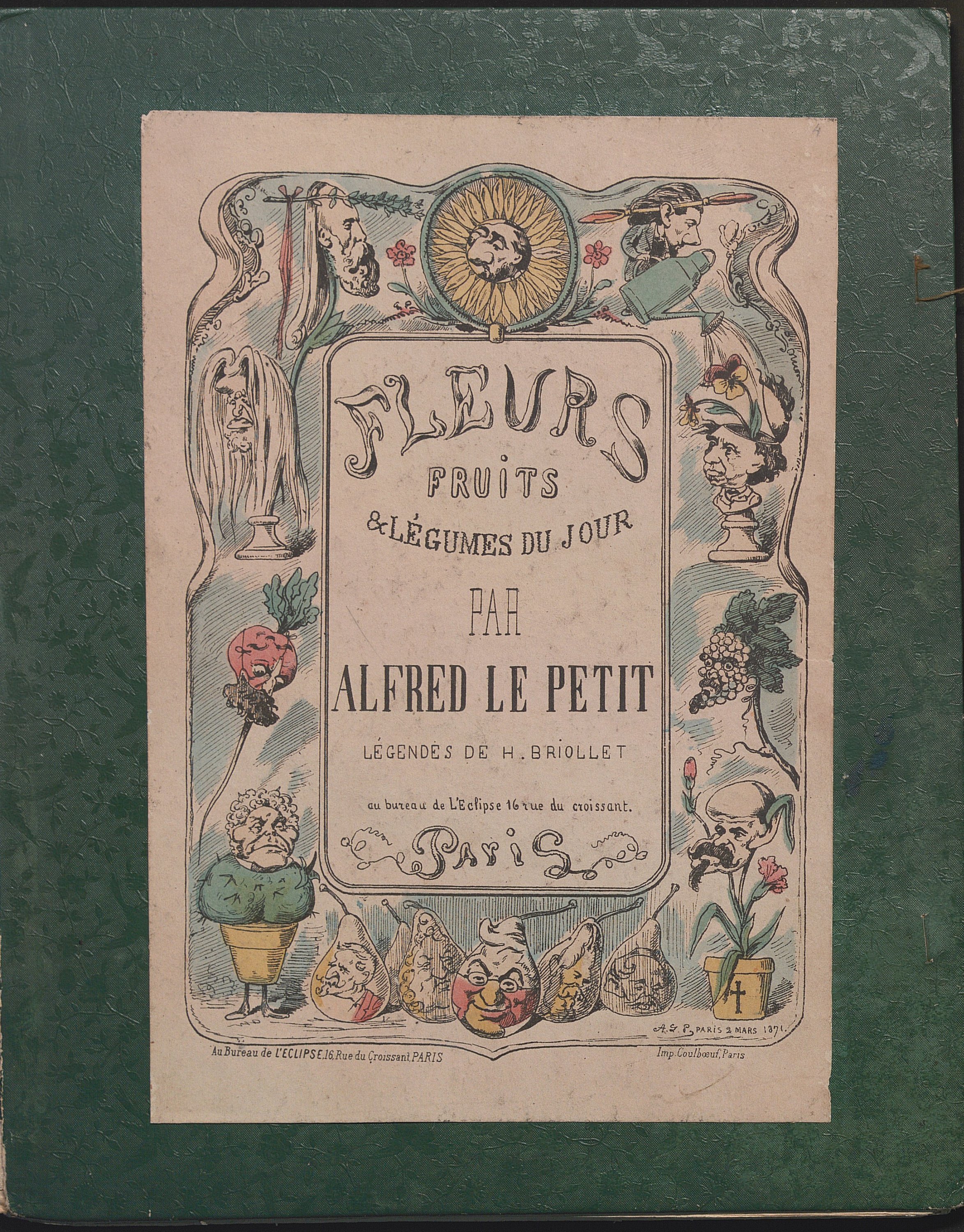 Fleurs, fruits & légumes du jour. Légendes de H. Briollet. Paris, Au bureau de L'Eclipse, 1871.