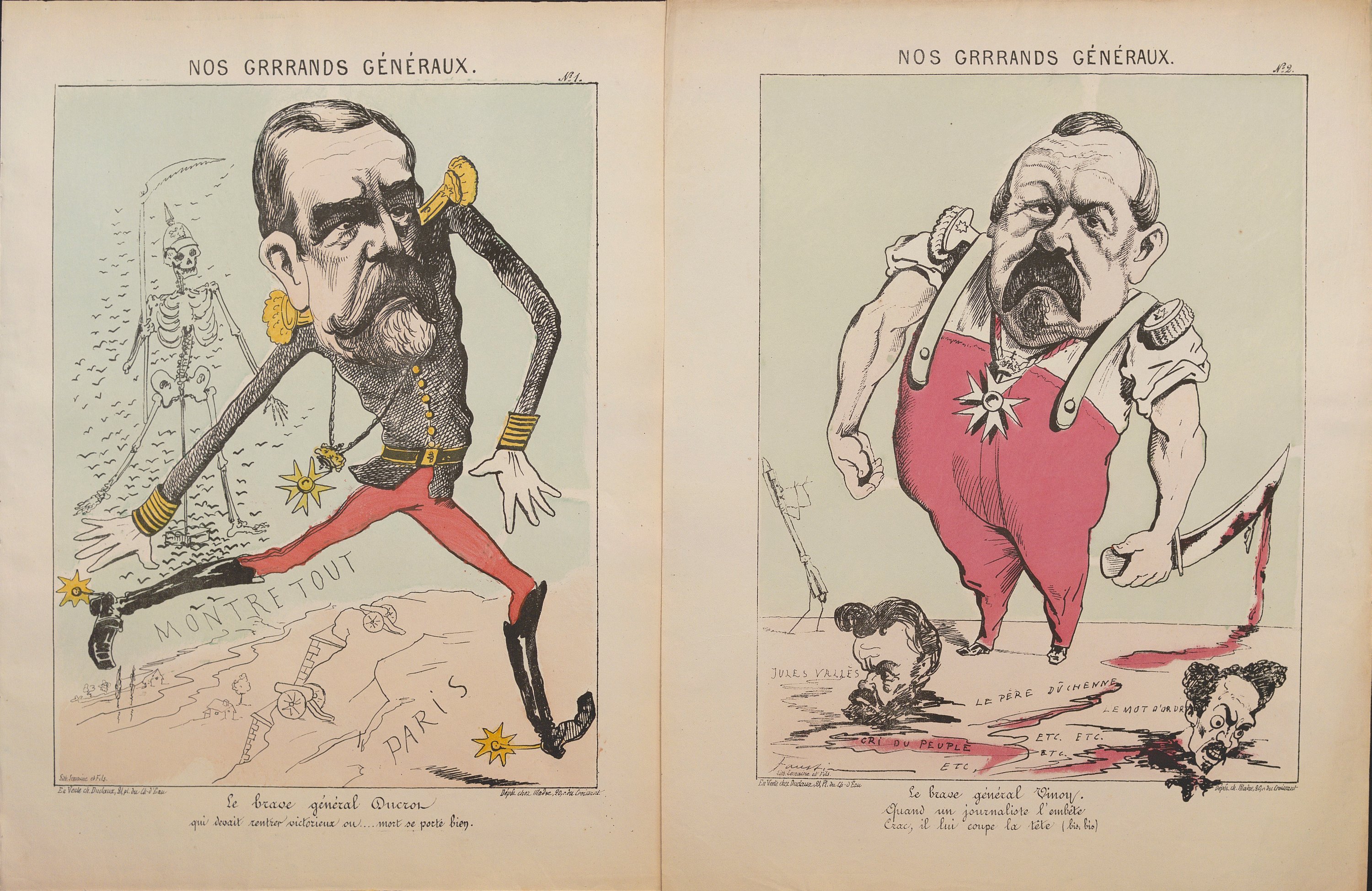 Nos Grrrands généraux, série complète, n°1 à 4, 35,5 x 26,5 cm, dont 1 pl. contrecollée sur feuillet ;