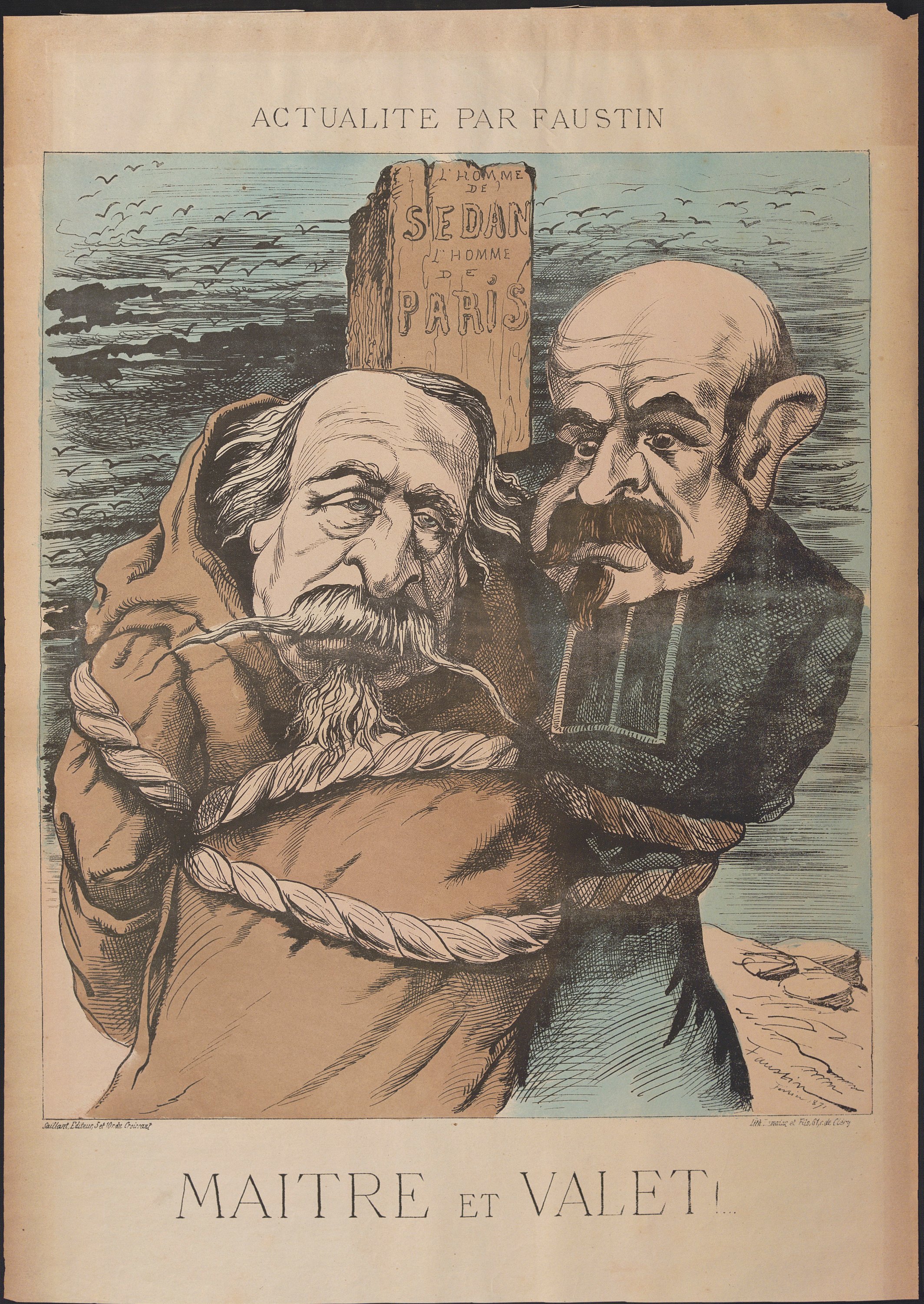 Actualité, Maître et valet et La suite aux valets, série complète, 52 x 38,5 cm (pli central, petite déchirure et petit mque coin haut droit) ;
