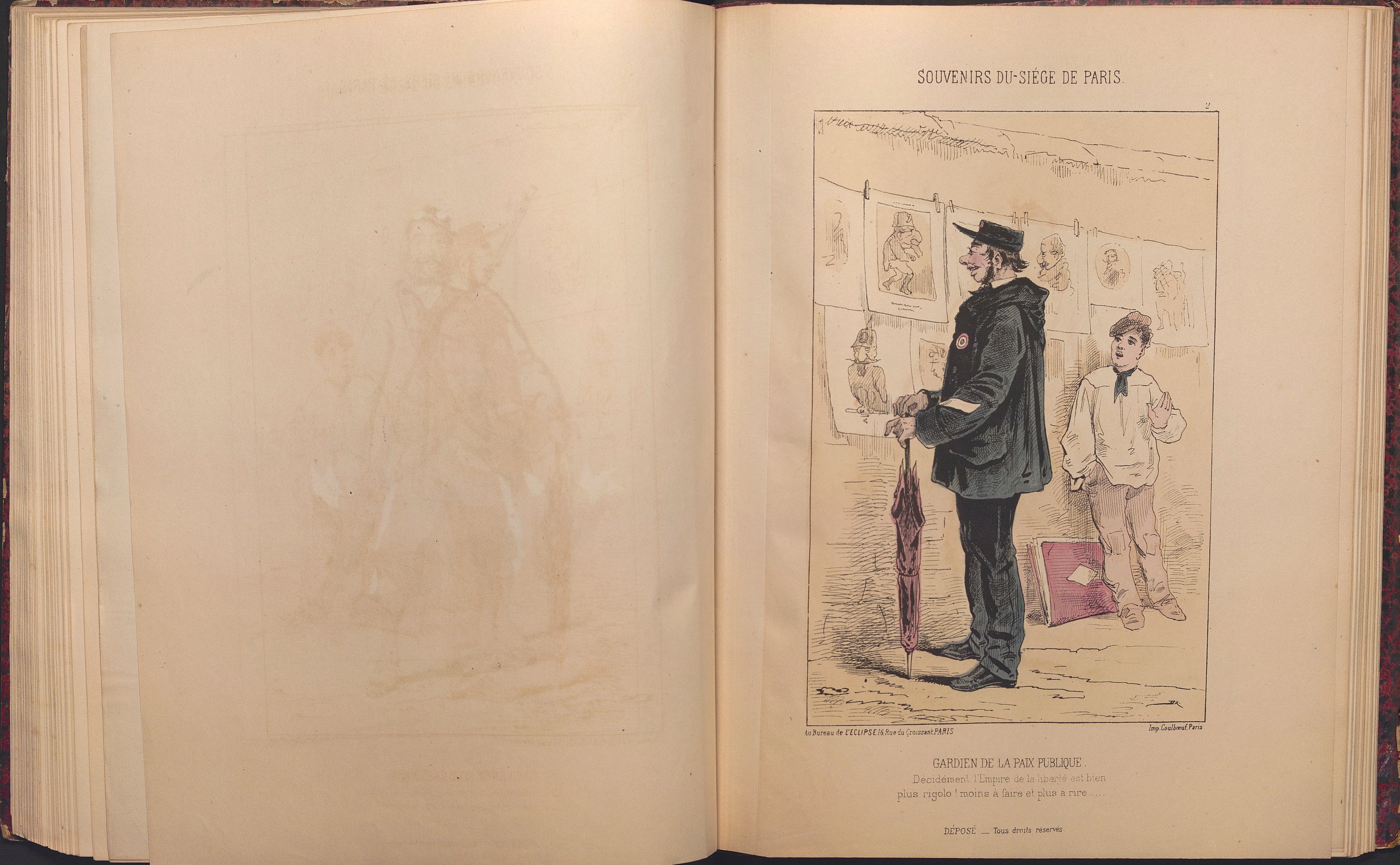 Souvenirs du Siège de Paris. Les Défenseurs de la Capitale. [Suivi de] Paris assiégé. Vie parisienne. [Suivi de] Les Soldats de la République. L'Armée française en Campagne.? Paris, Au Bureau de L'Eclipse, [1871-1872]. In-4 rel. ½ chagr. rouge, 2 ff. (titre) et 31 pl., 2 ff. (titre) et 31 pl.- 2 ff. (titre) et 31 pl.