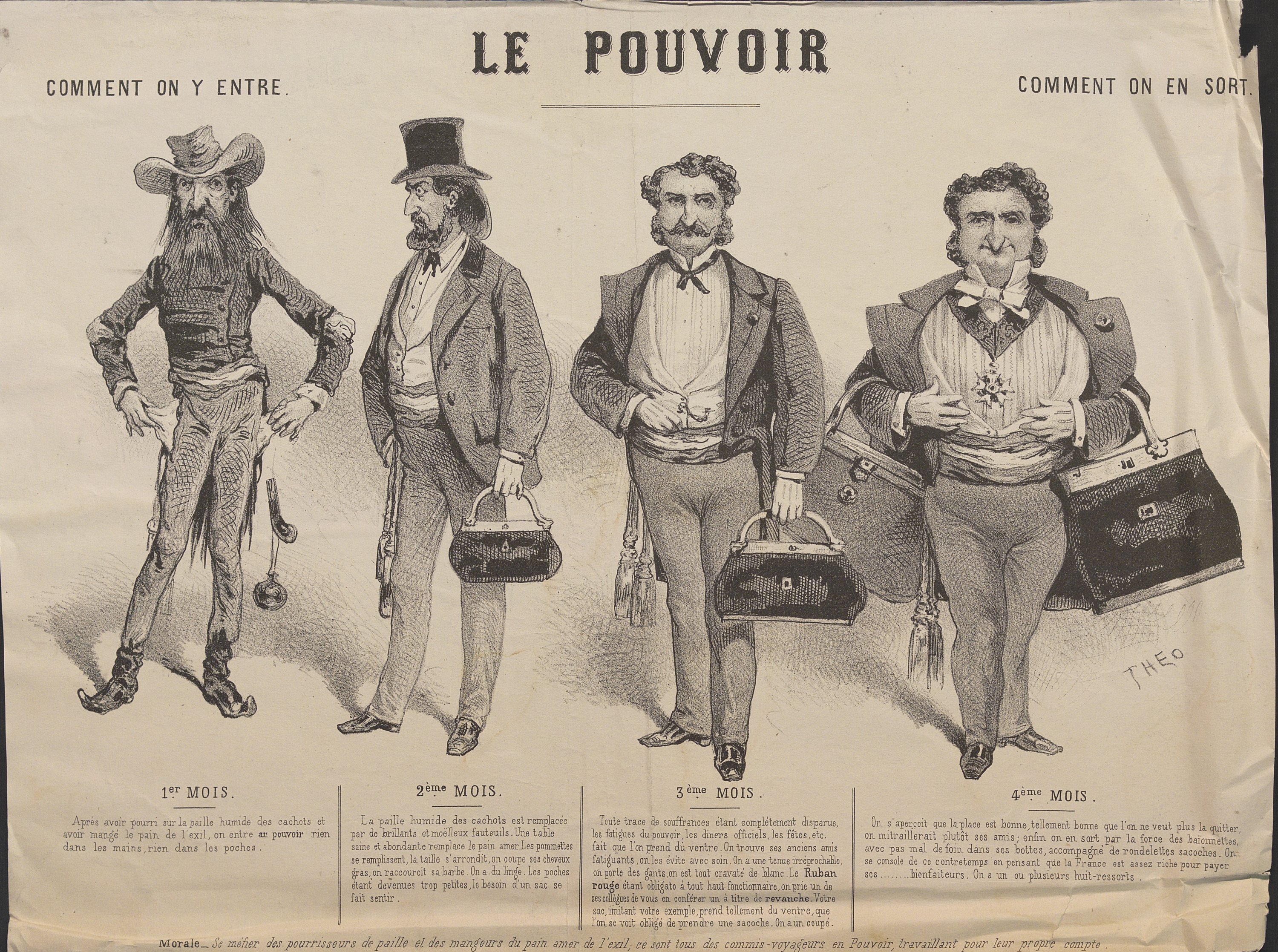Dupendant (Alexandre): Commune, ils ne la démoliront jamais, 34,5 x 25 cm ; La balançoire, 34,5 x 25 cm (petite déchirure en marge) ; Mon cher Veuillot , 32 x 23 cm ; Ils voudraient se rallier à nous , 35 x 26,5 cm, contrecollé sur feuillet ; Engagements, la République se refusant de prêter sur ce qui lui appartient, 33 x 26 cm (rest.) ;
