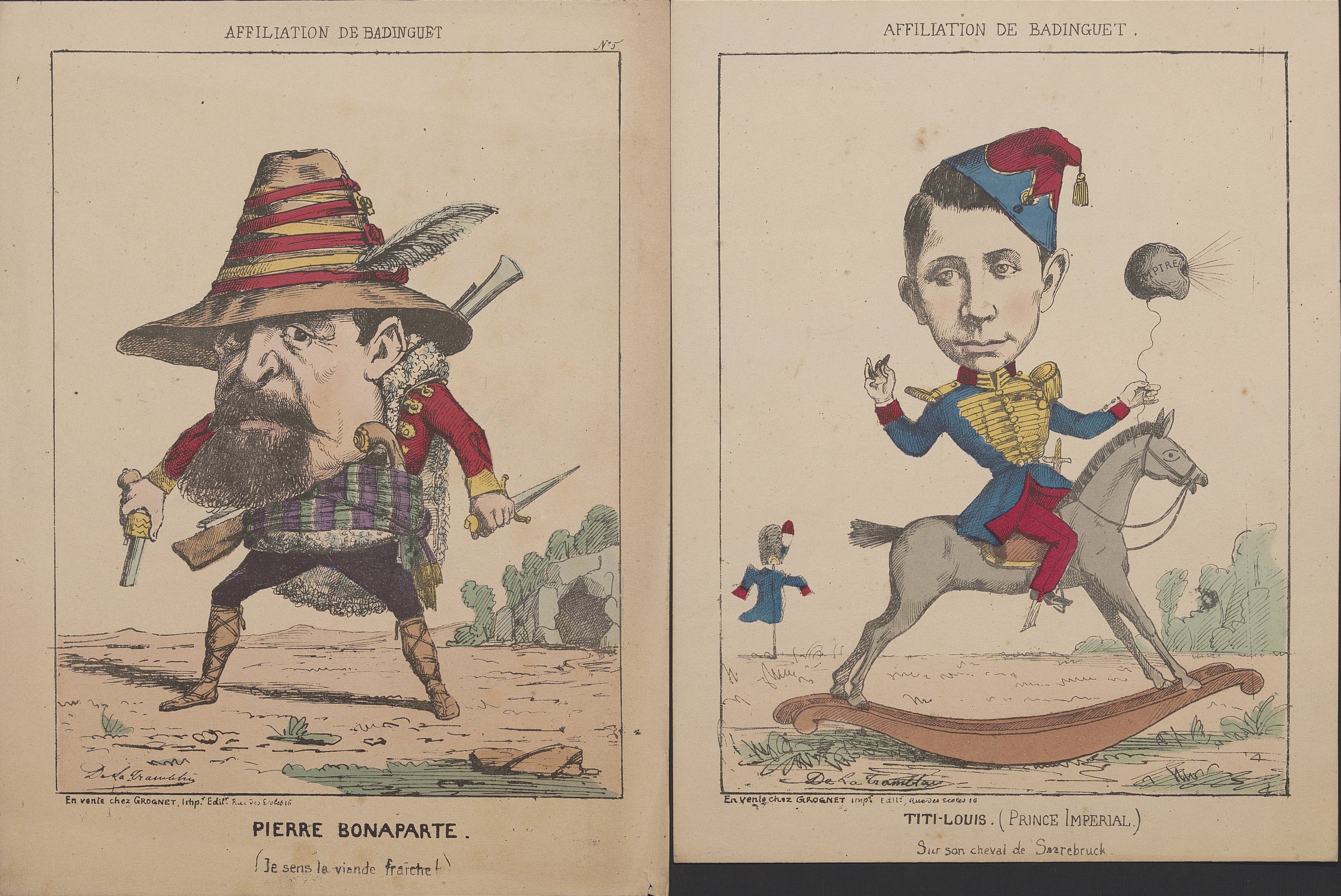 Louis Valentin de la Tremblais: 17 lith. en couleurs, formats divers: Affiliation de Badinguet, 3 ex. (Titi-Louis, Pierre Bonaparte, Fialin) ; Actualiés n°32 A la couenne impériale ; Actualités n°34 ; Actualités n°38 ; Actualités n°39 ; Actualités n°41 ; Actualités n°42 ; Actualités n°43 ; Actualités n°47 ; Actualités n°51 ; Actualités n°55 ; Actualités n°56 ; Actualités n°66 ; Actualités n°67 ; Actualités n°77 ;