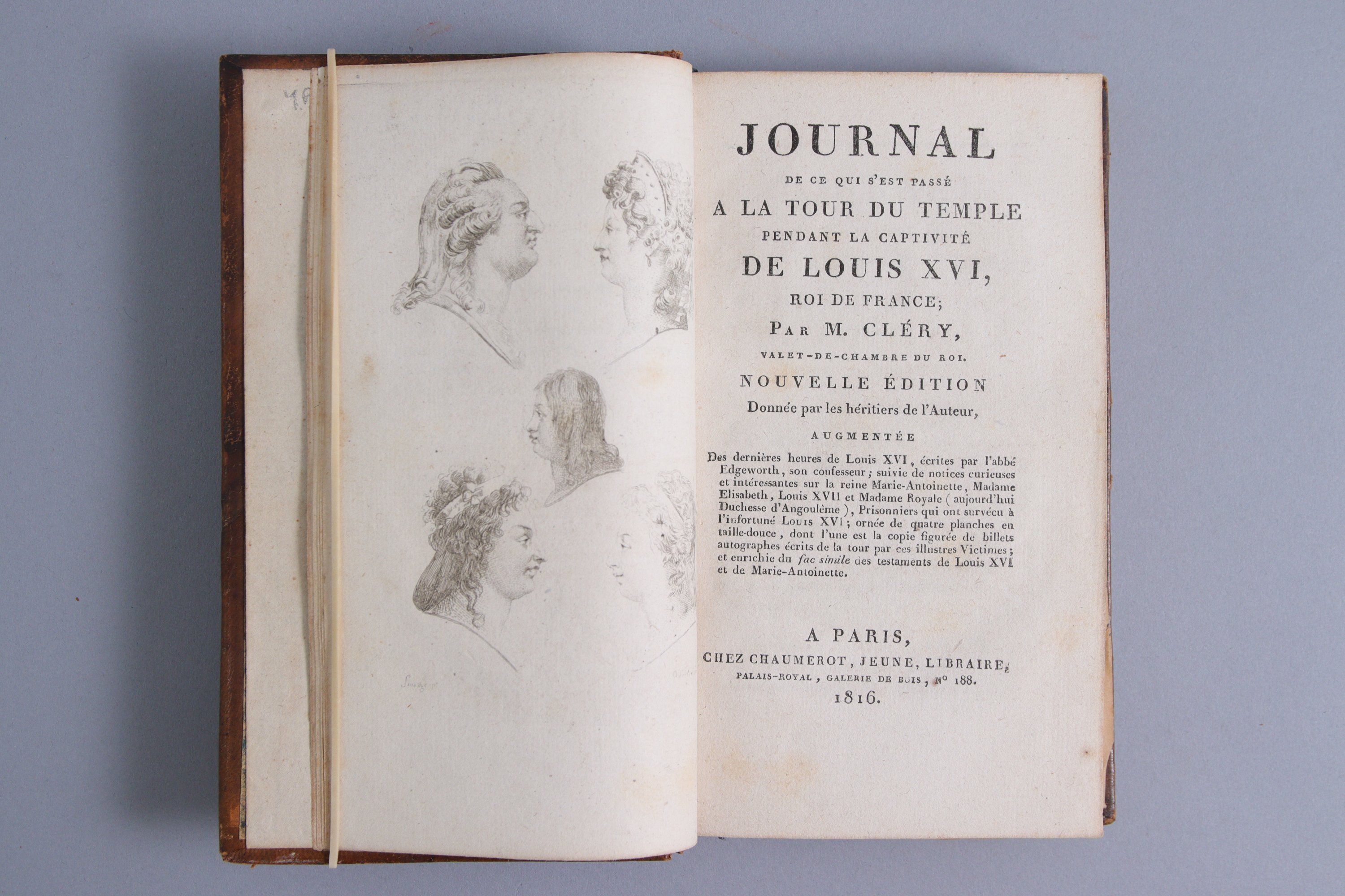 Journal de ce qui s'est passé à la Tour du Temple pendant la captivité de Louis XVI, roi de France. Par M. Cléry, valet de chambre du Roi. Nouvelle édition donnée par les héritiers de l'auteur, augmentée des Dernières heures de Louis XVI écrites par l'abbé Edgeworth, son confesseur ... ornée de 4 planches en taille-douce, dont l'une est la copie figurée de billets autographes écrits de la tour par ces illustres victimes, enrichie du fac simile des testaments de Louis XVI et de Marie Antoinette. .